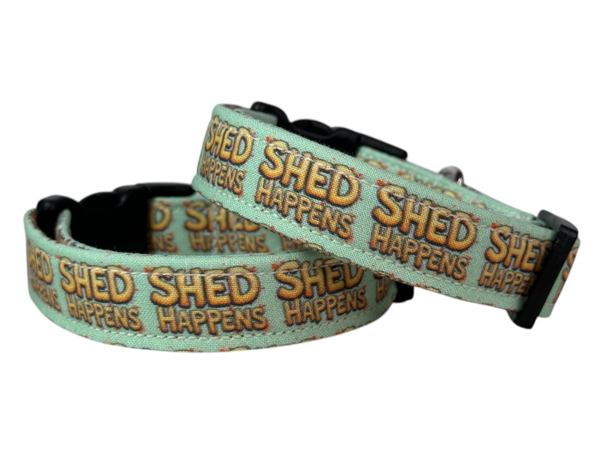 Shed Happens Dog Collar β Funny Handmade Pet Collar with Heavy-Duty Webbing & Stainless Steel Hardware
