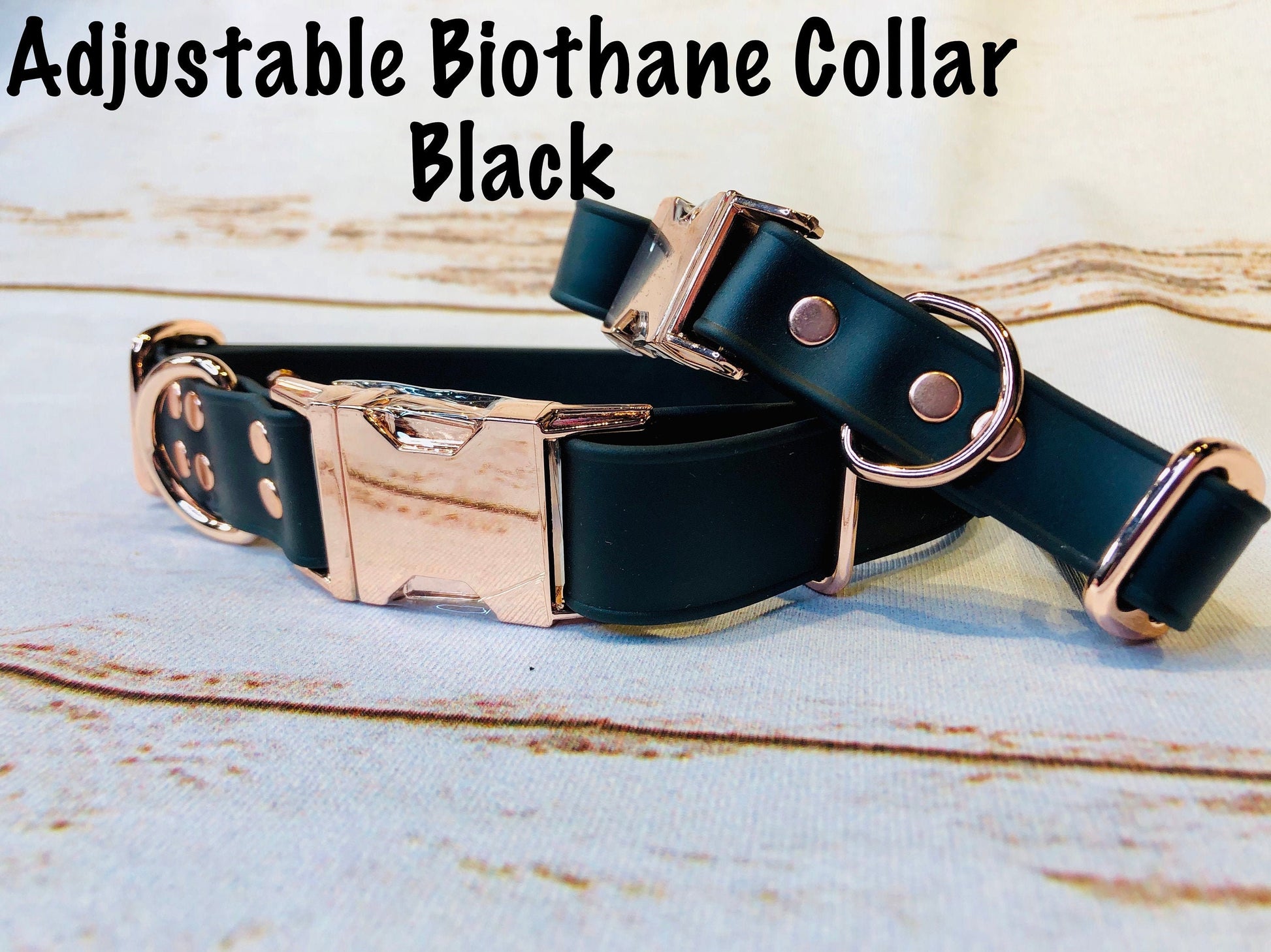 Biothane dog collar, black dog collar, dog collar, buckle dog collar, waterproof collar, Adjustable Biothane Dog Collar, rose gold hardware
