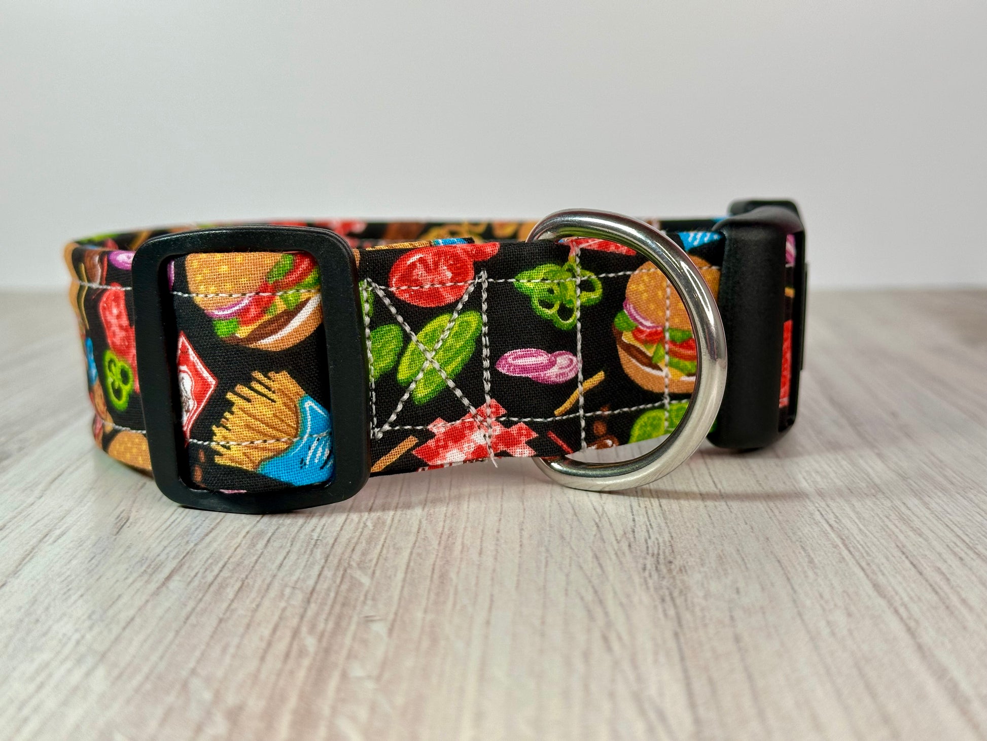 Burger and fries, Food Dog collar, handmade side release dog collar
