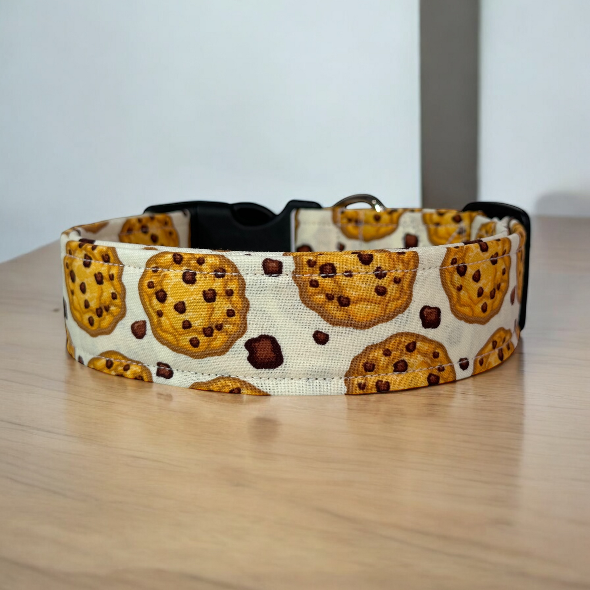 Chocolate chip cookie food Dog collar, handmade side release dog collar