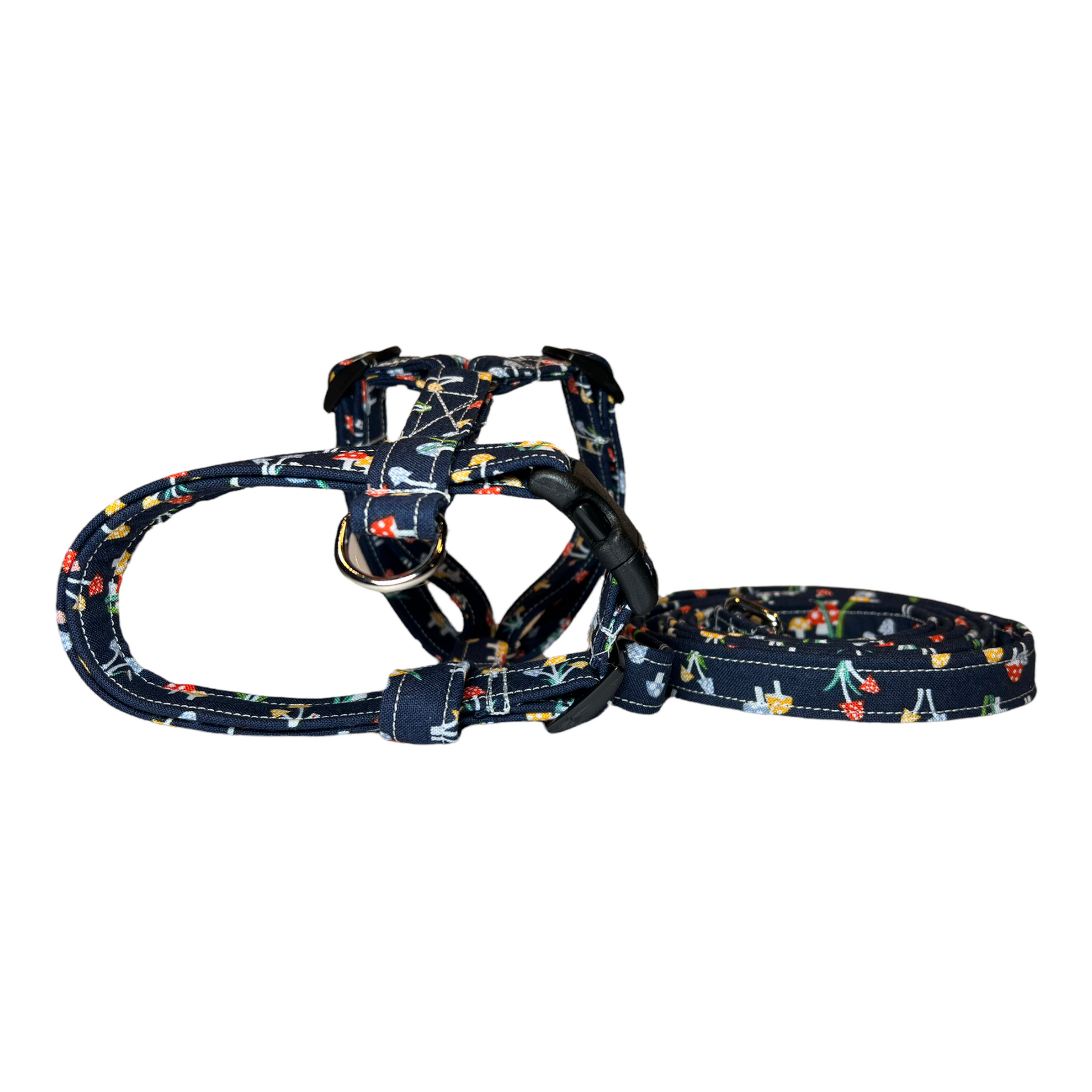 Mushroom dog harness and leash set, pet harness and matching leash, dog harness and matching leash, standard roman harness, step in harness, pet harness
