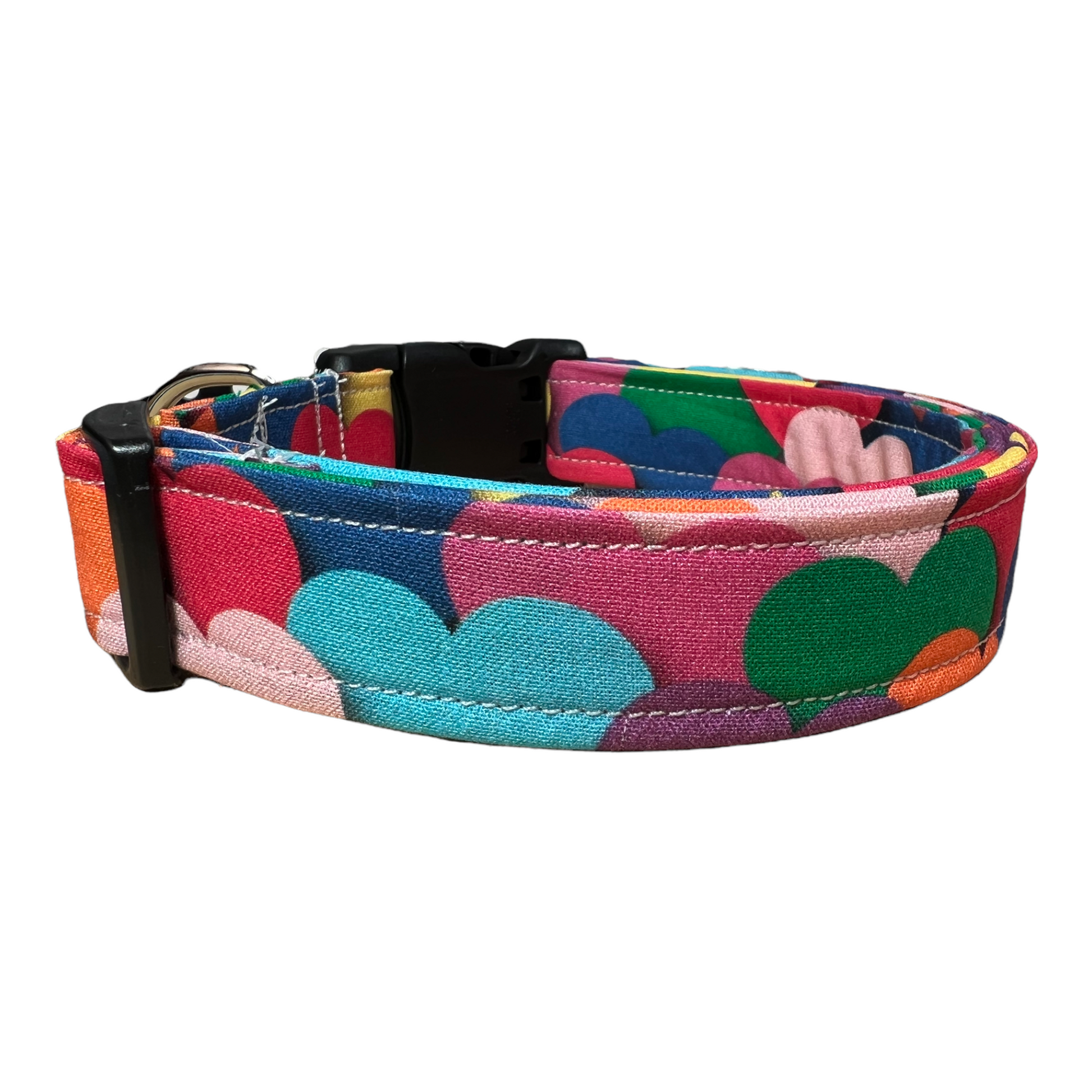 Rainbow Hearts Dog Collar, Side release adjustable, dog collar girl, dog collar boy, collars for dogs