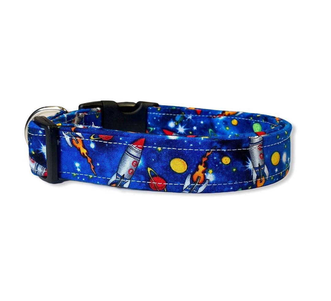 Dog Collar, boy dog collar, spaceship collar, adjustable collar, washable collar, sci fi dog collar, blue, spaceships, galaxy, space, aliens