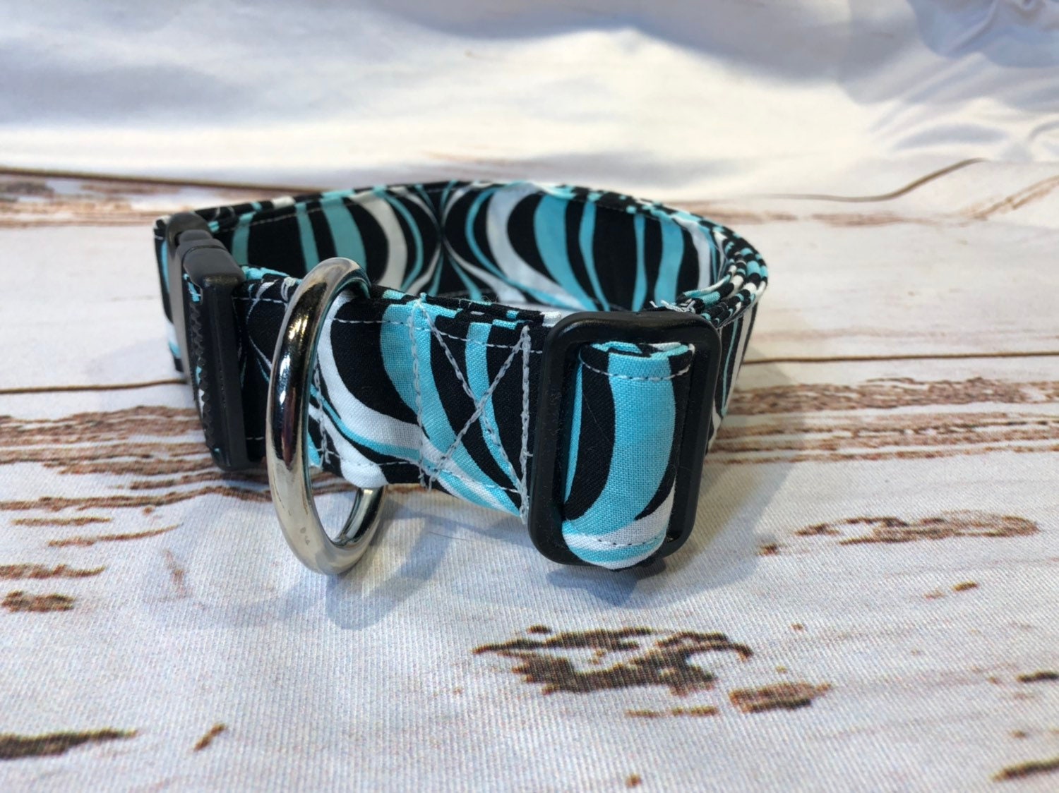 Dog Collar, dog collar girl, dog collar boy, nylon collar, martingale collar, adjustable collar, buckle dog collar, black, aqua, waves