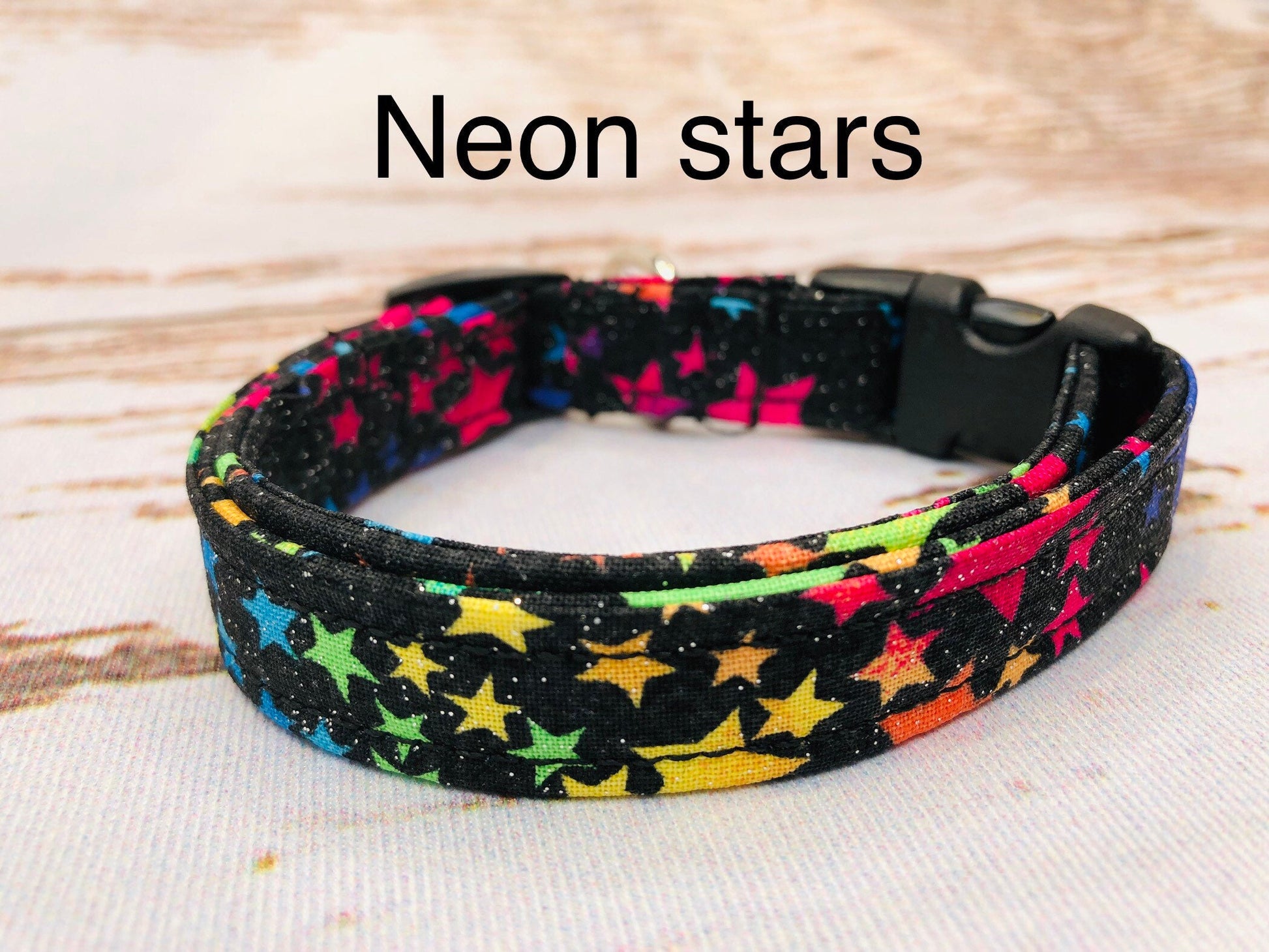 Dog Collar, girl dog collar, neon stars dog collar, adjustable collar, buckle dog collar, martingale, nylon, female dog collar, neon stars