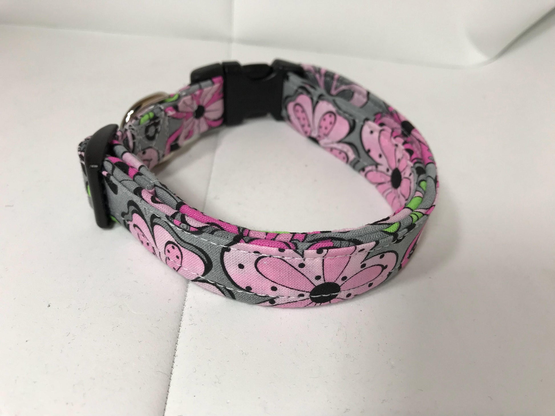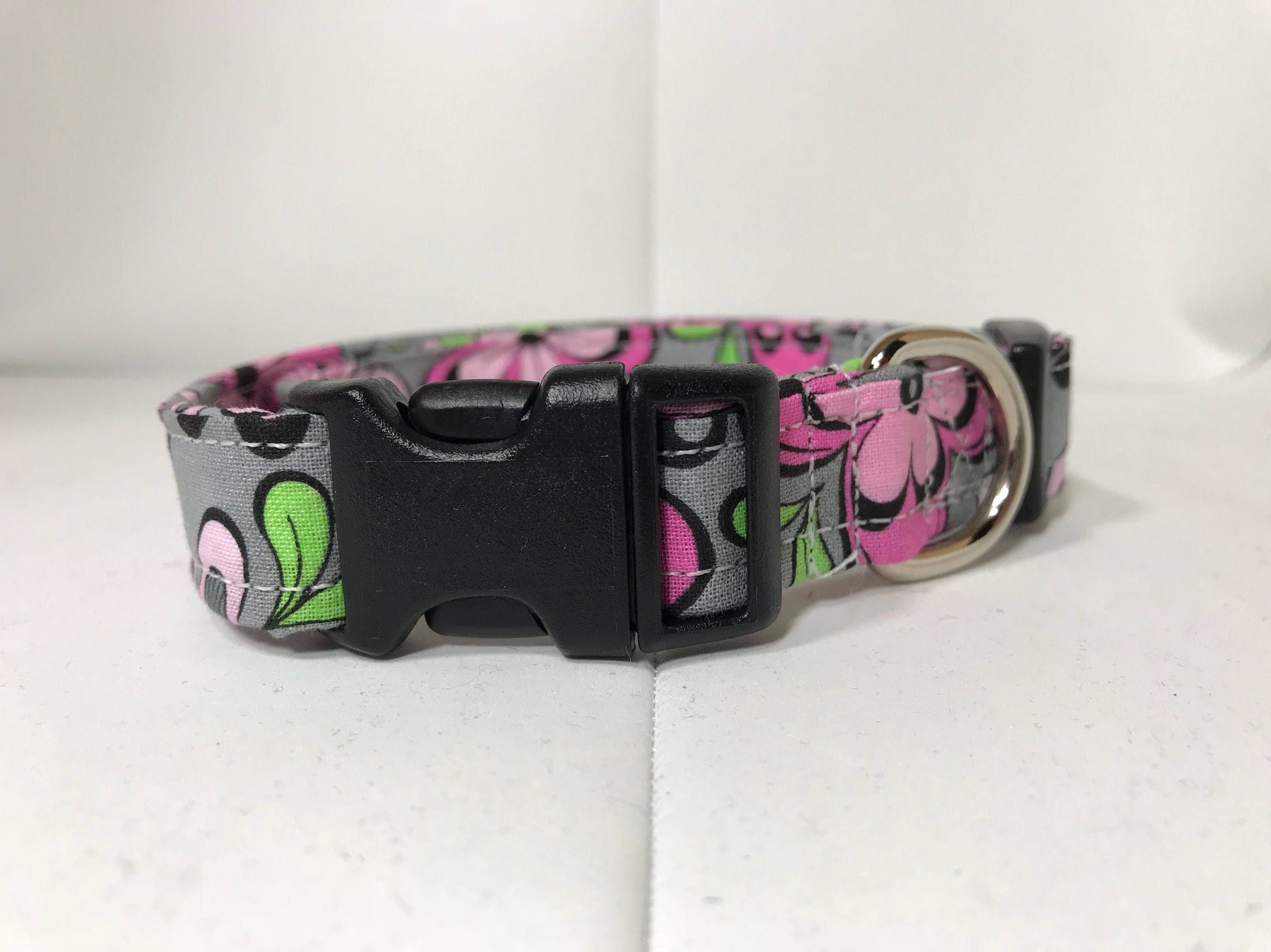 Dog Collar, girl dog collar, floral dog collar, martingale, adjustable collar, buckle dog collar, pink, flowers, gray, grey, pink flowers