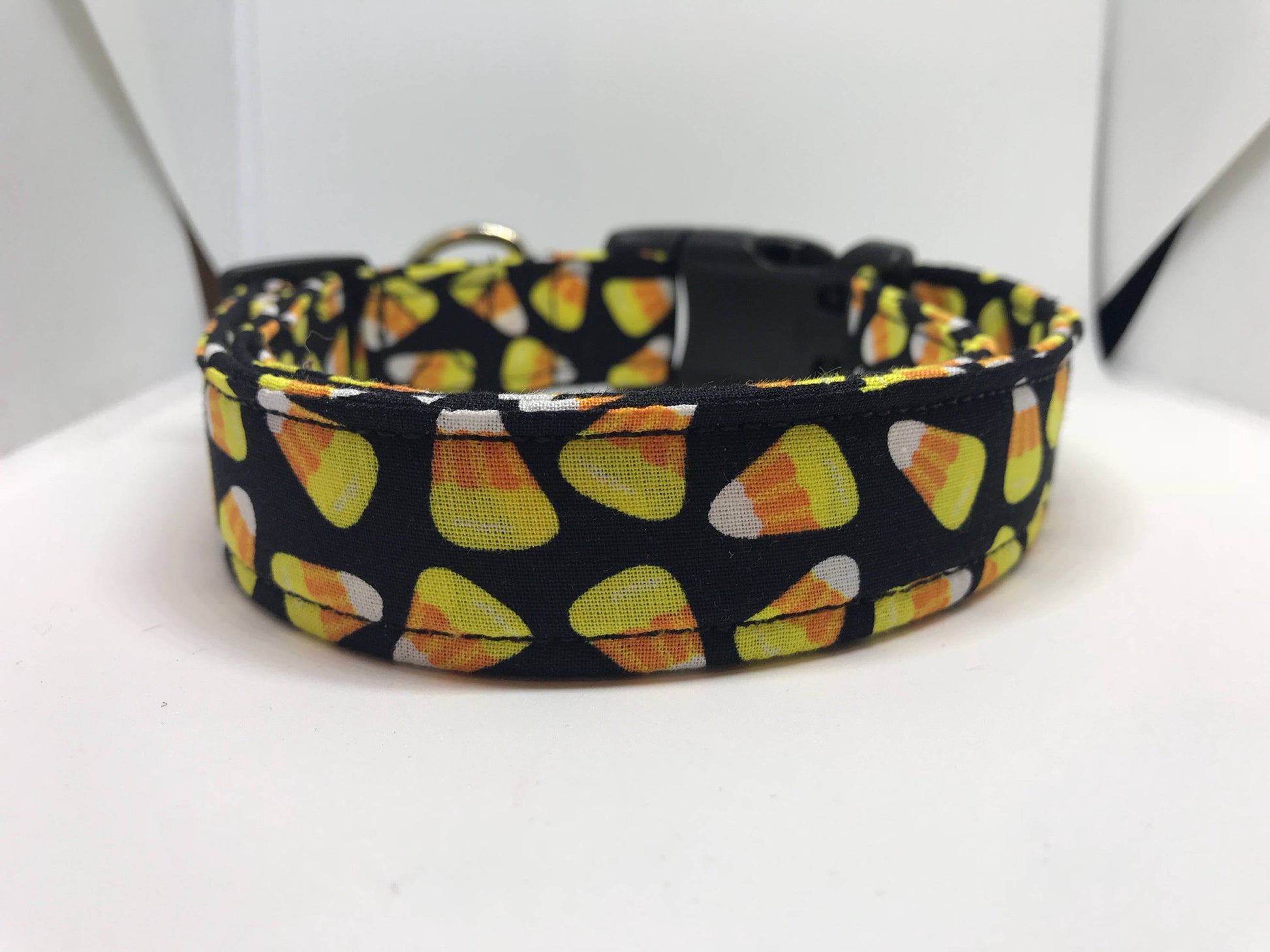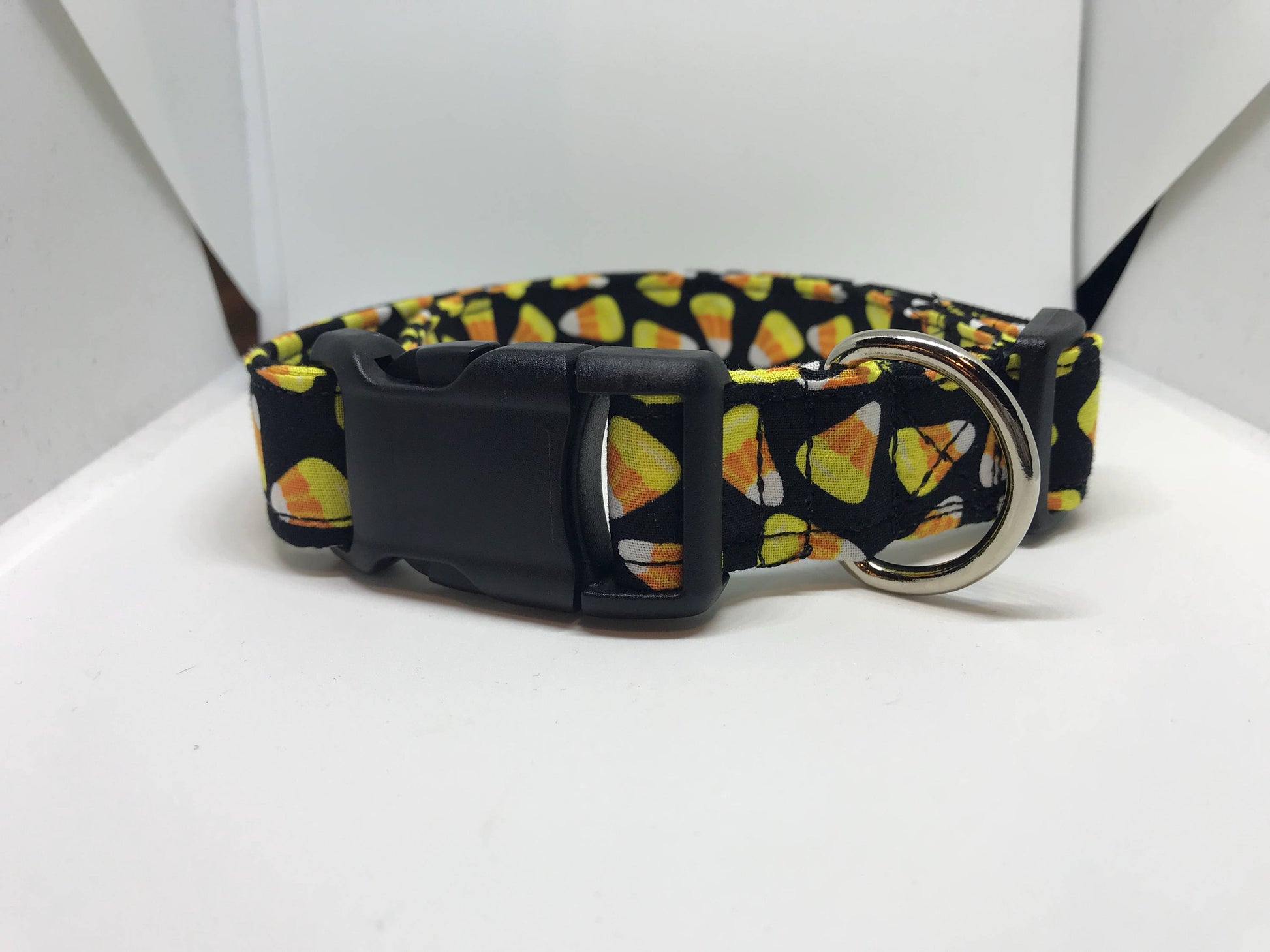 Dog collar, halloween collar, side release collar, nylon dog collar, halloween, adjustable collar, candy corn, glow in the dark, spider webs