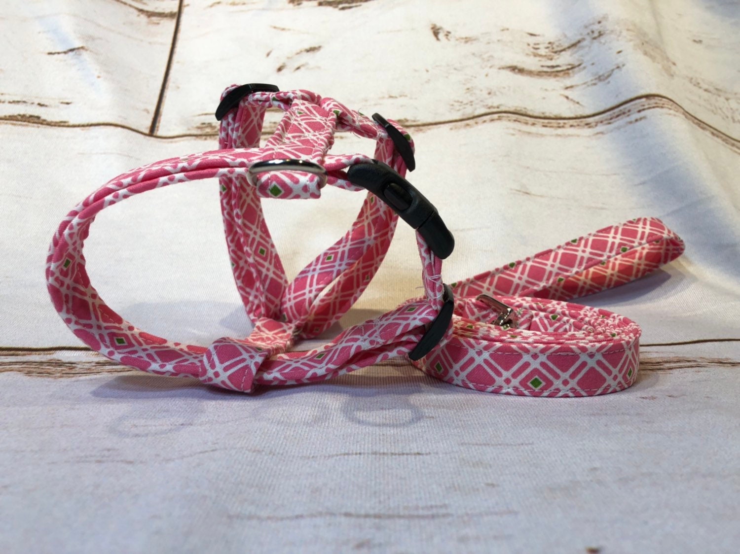 Dog harness, Harness and leash, girl dog harness, dog halter, leash, step in harness, standard harness, dog harness set, pink plaid, pink