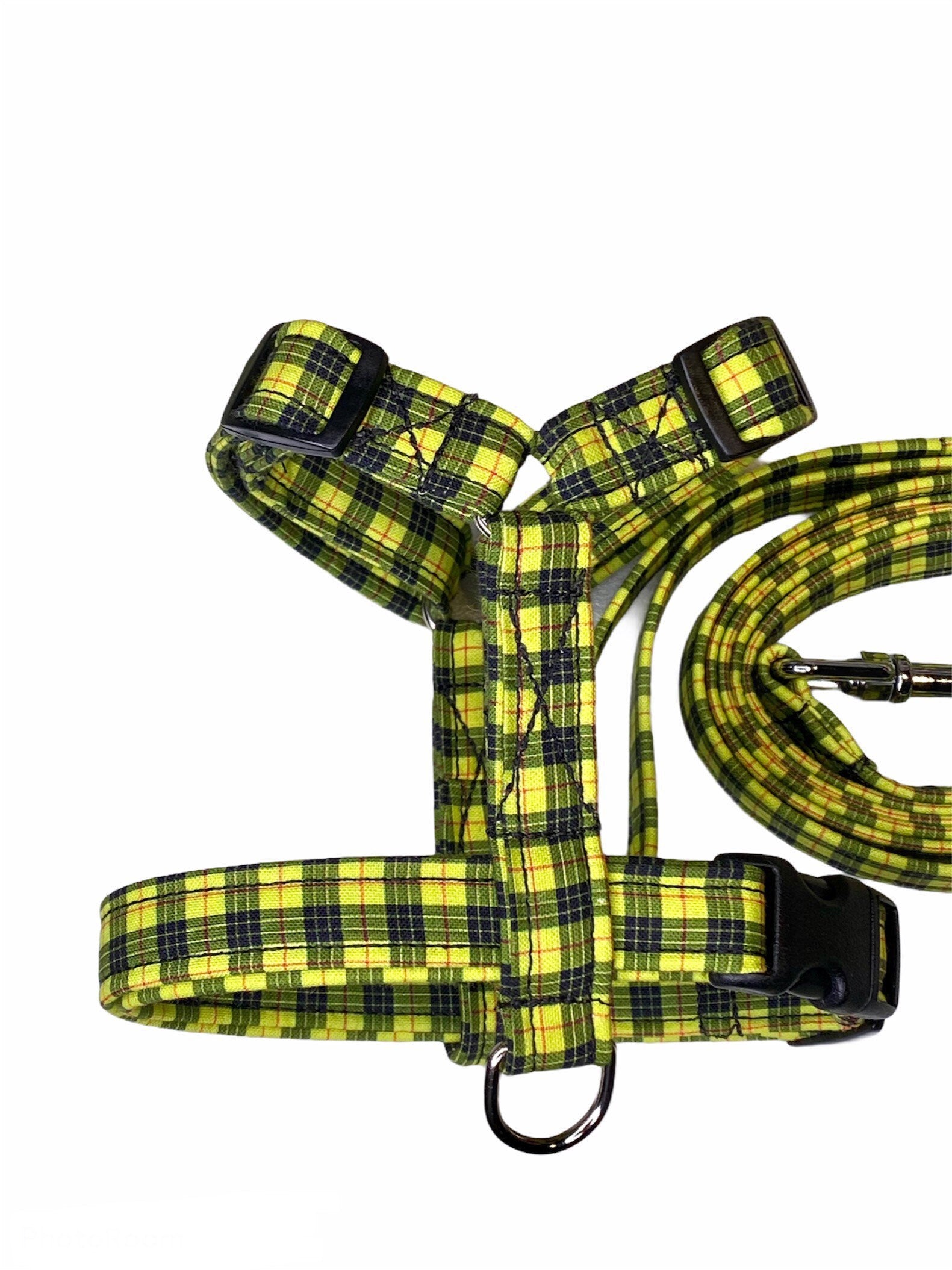 Dog harness, Harness and leash set, matching leash, step in harness, standard harness, plaid dog harness, plaid, yellow, standard Roman