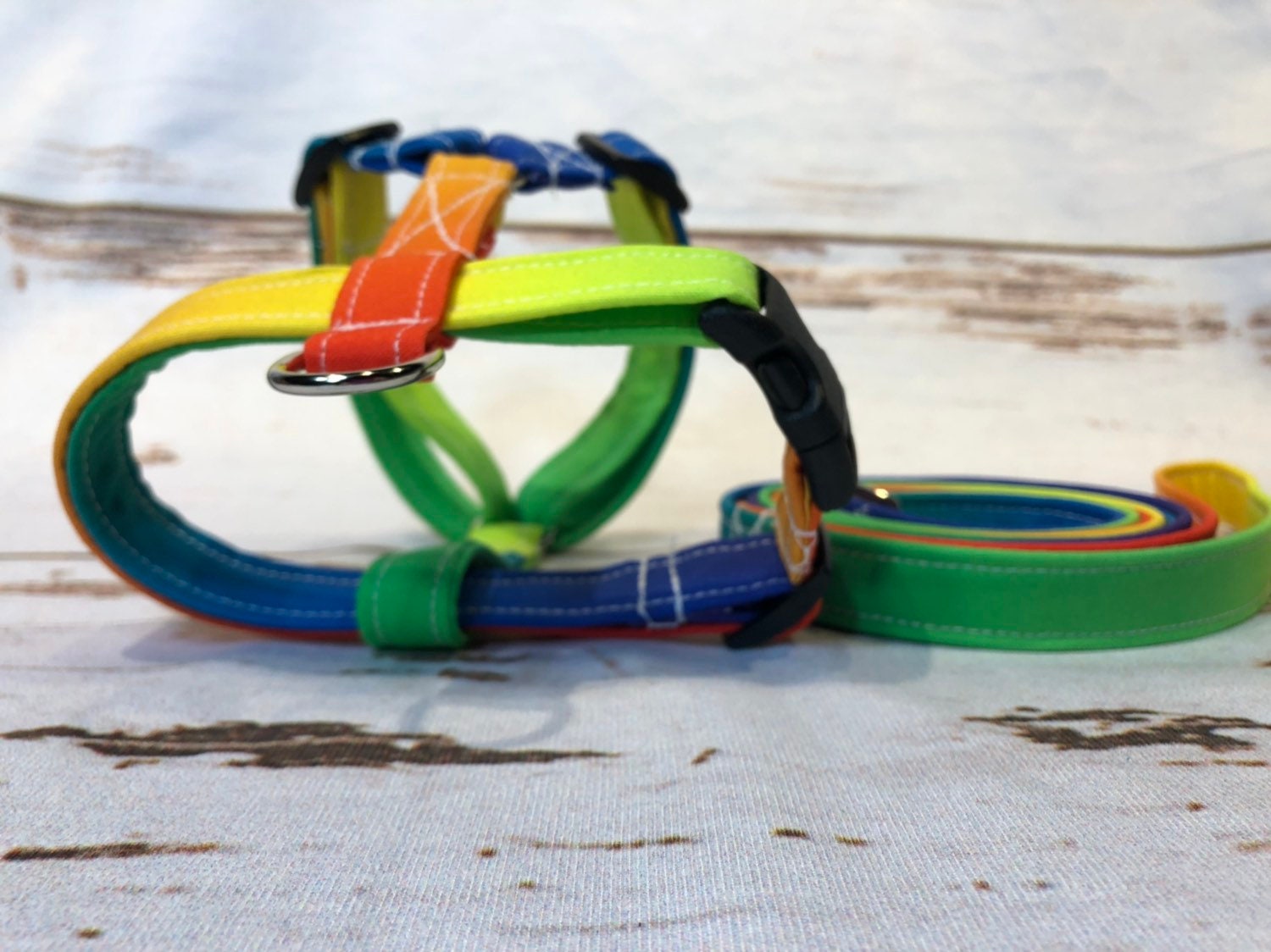 Dog harness, Harness and leash set, step in harness, standard harness, adjustable harness, rainbow dog harness, rainbow, pride, pride month