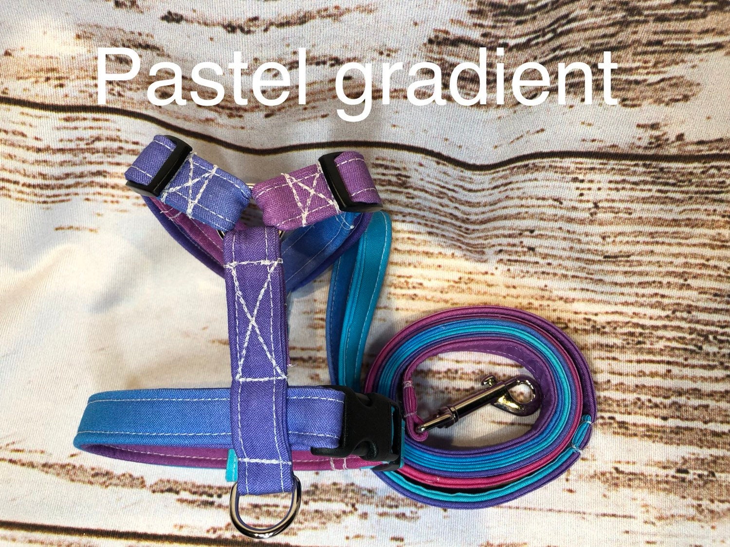 Dog harness, Harness and leash, step in harness, standard harness, adjustable harness, pastel dog harness, pink, purple, blue, gradient