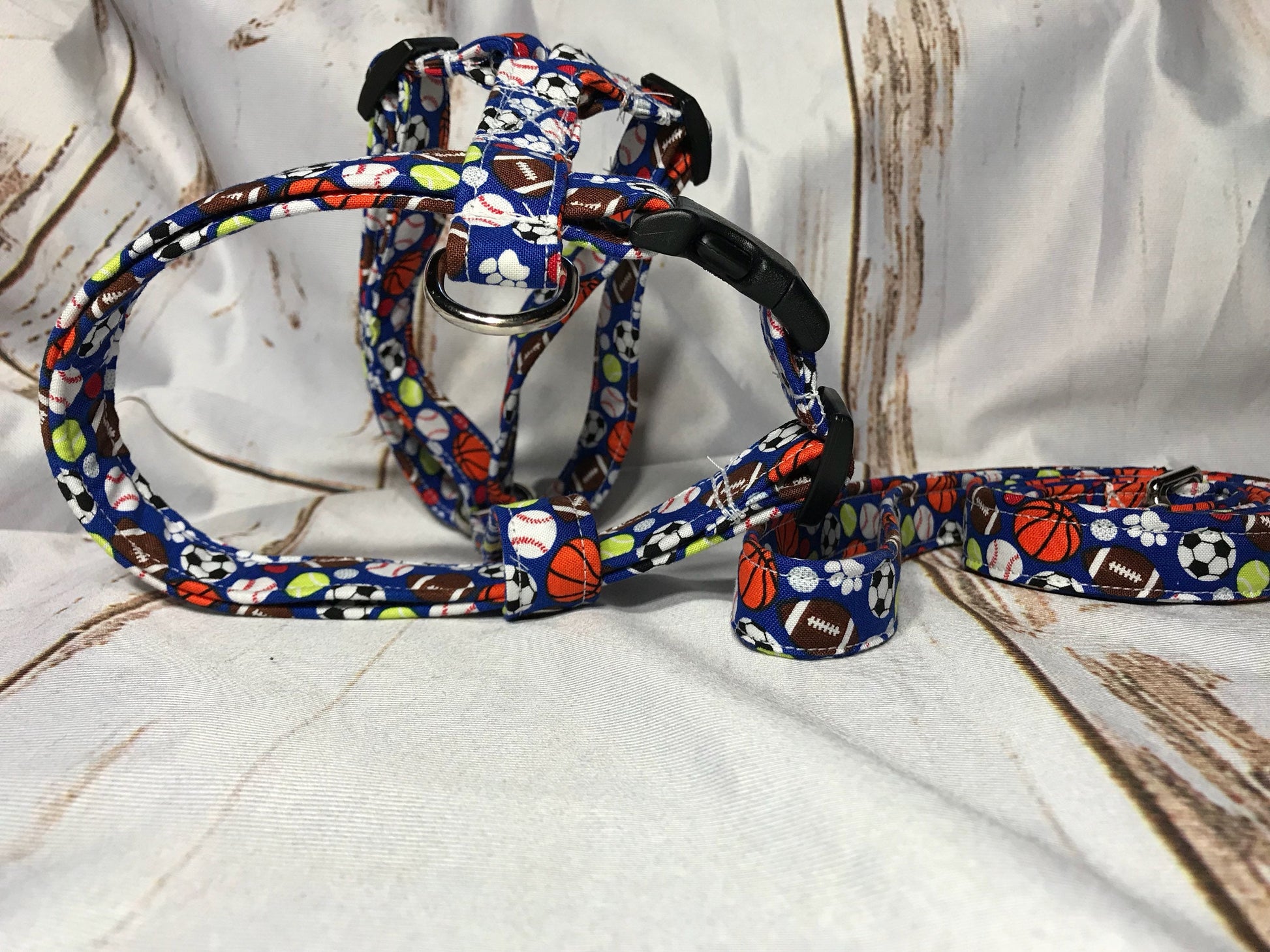 Dog harness, Harness and leash, step in harness, standard harness, dog harness set, adjustable harness, sports, balls, paws, dog balls, blue