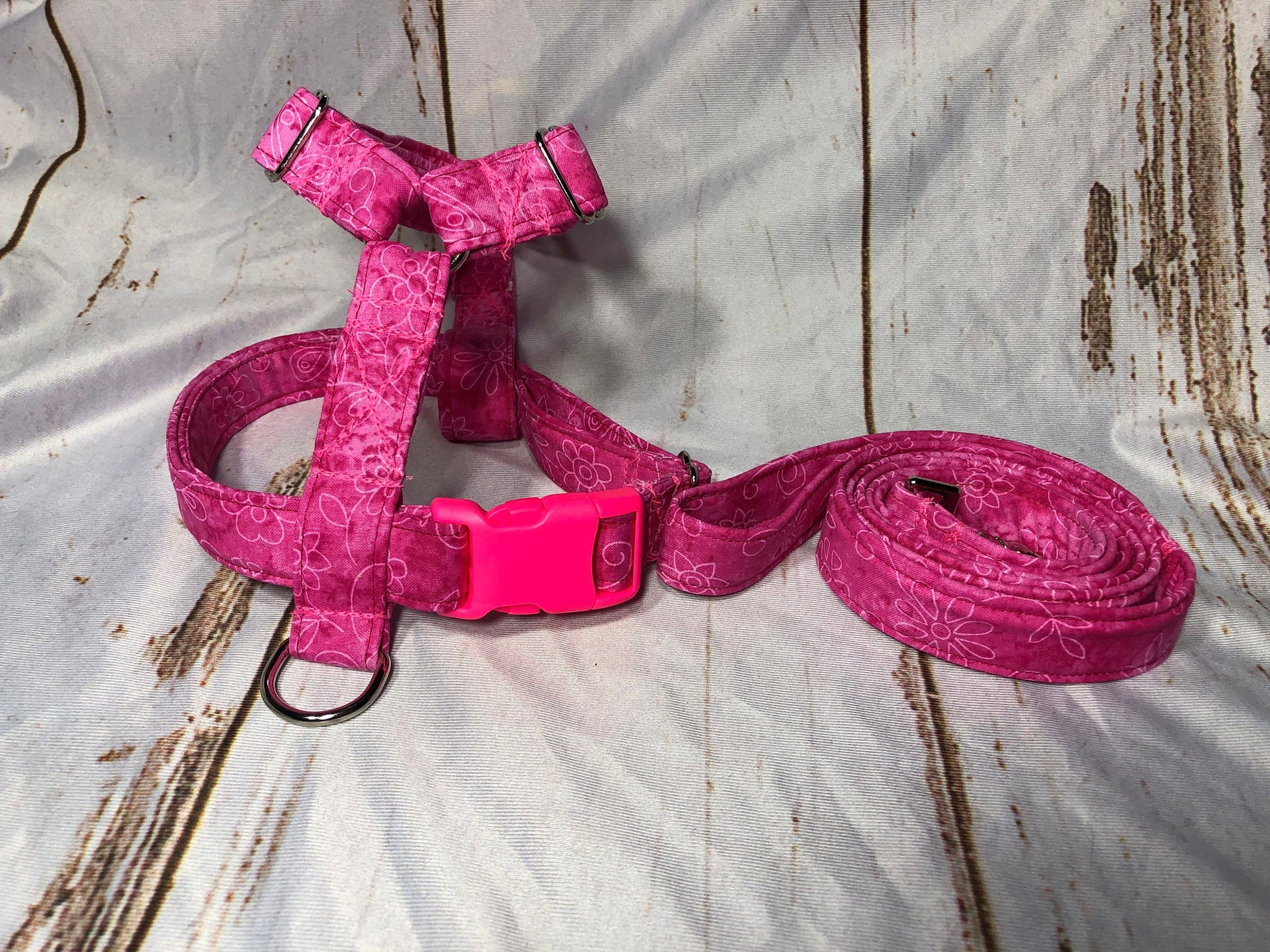 Dog harness, Harness and leash, step in harness, standard harness, dog harness set, adjustable, pink harness, pink floral, pink thread