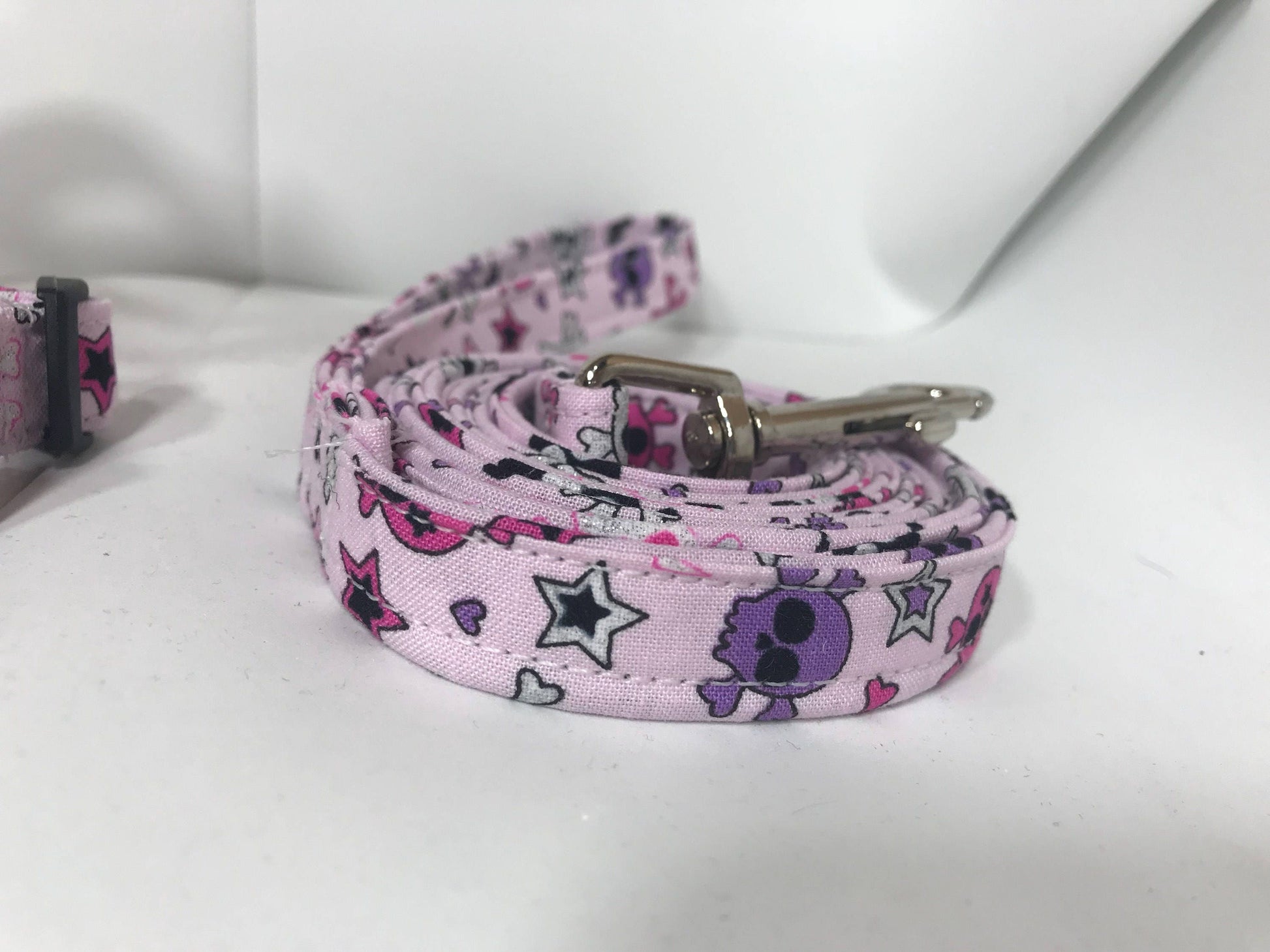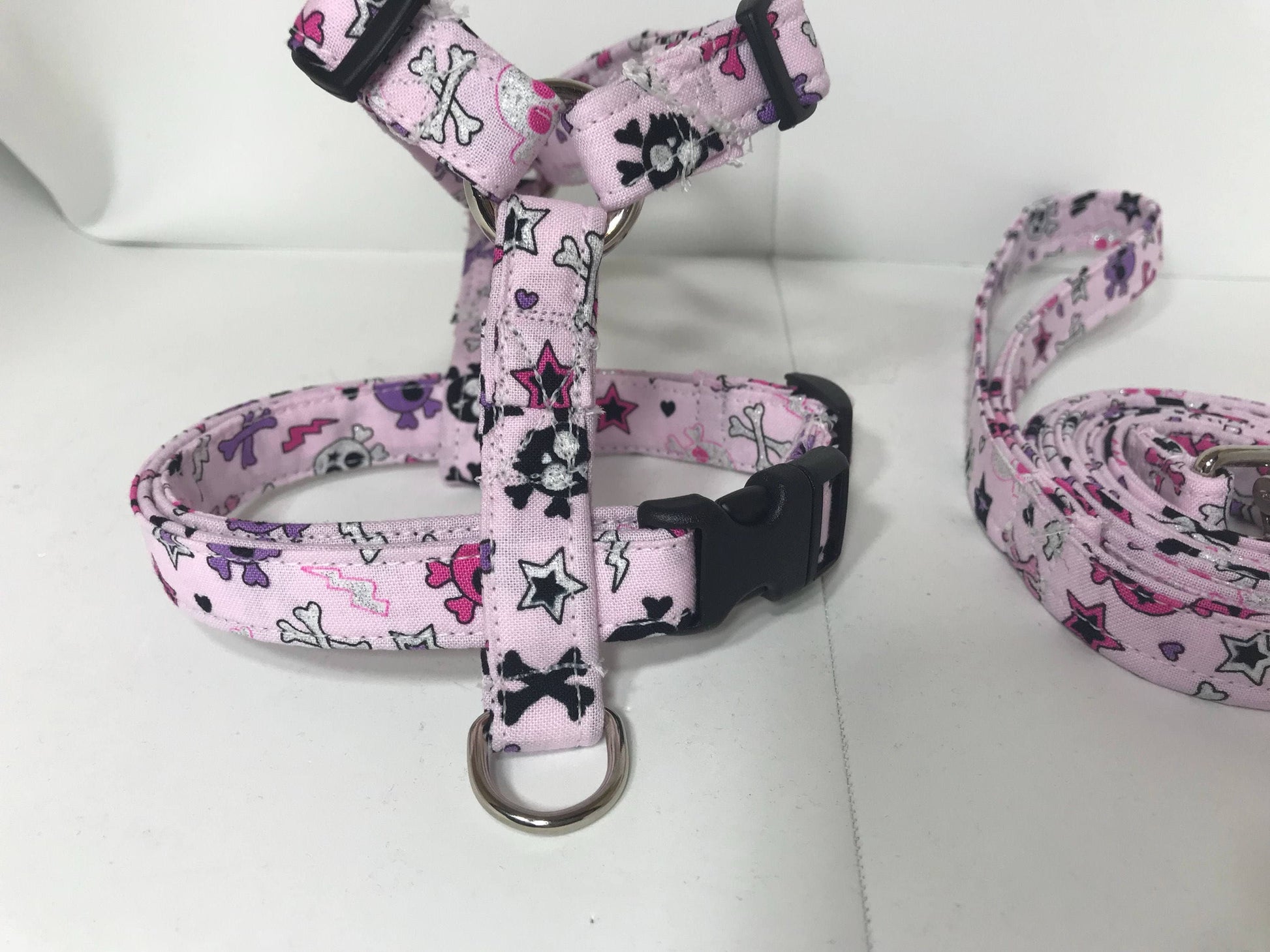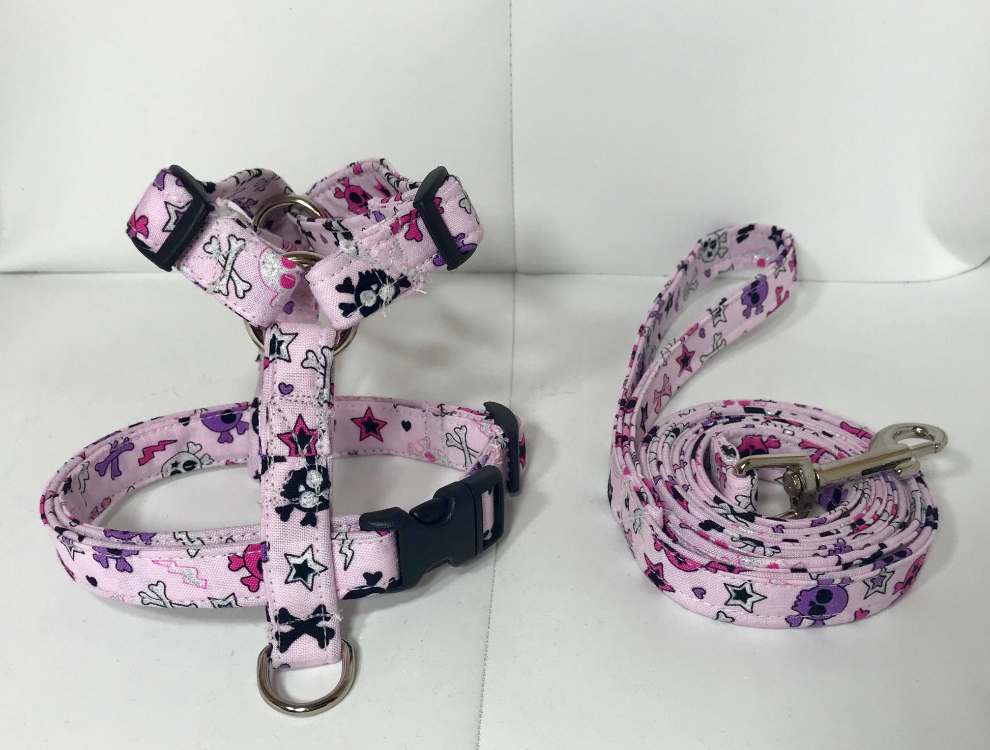 Dog harness, Harness and leash, step in harness, standard harness, dog harness set, dog halter, pink, punk, rocker, girly skulls, sparkles