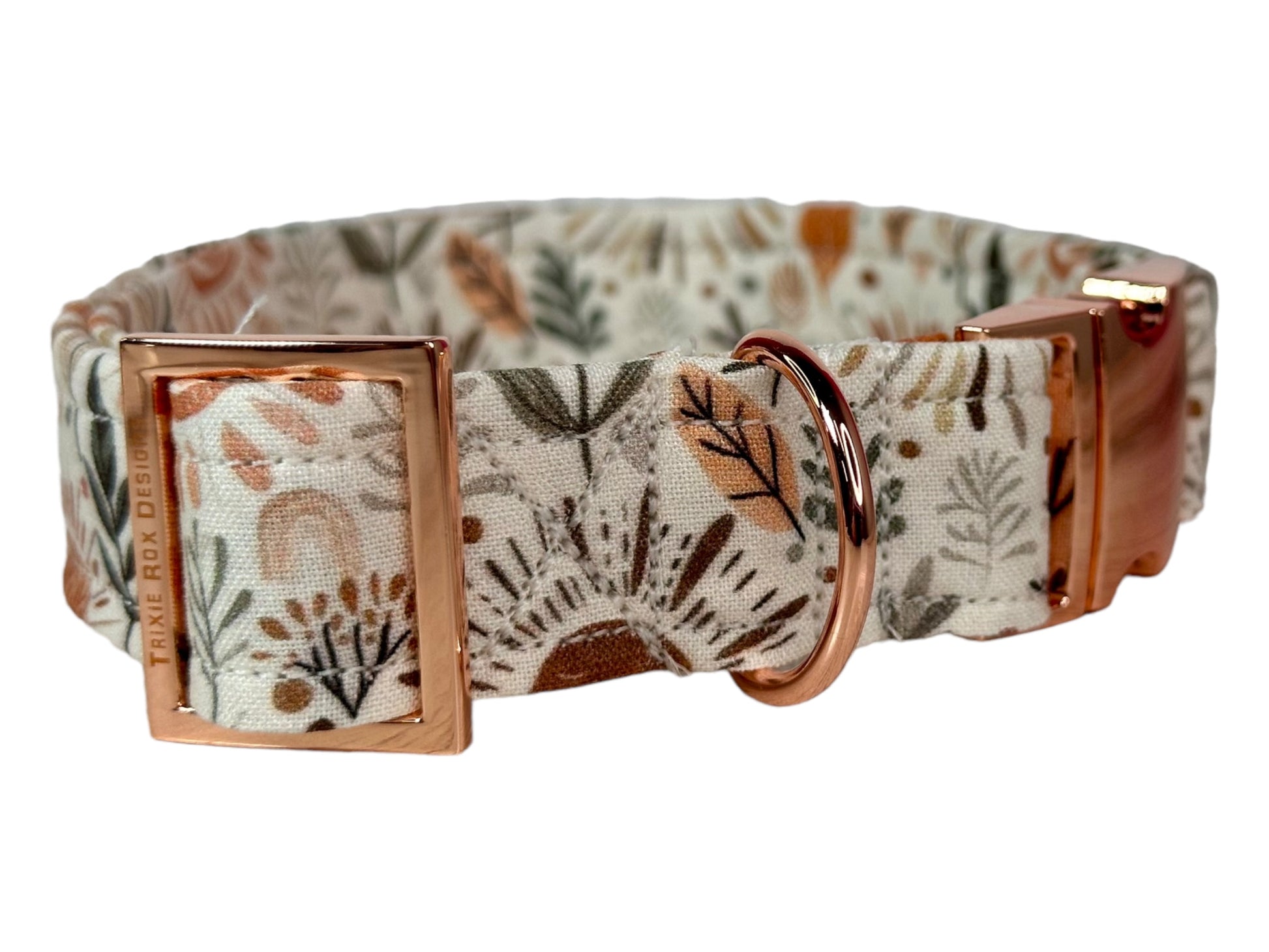 Fall Floral and leaf - Personalized Engraved Dog collar - Metal Side release dog collar