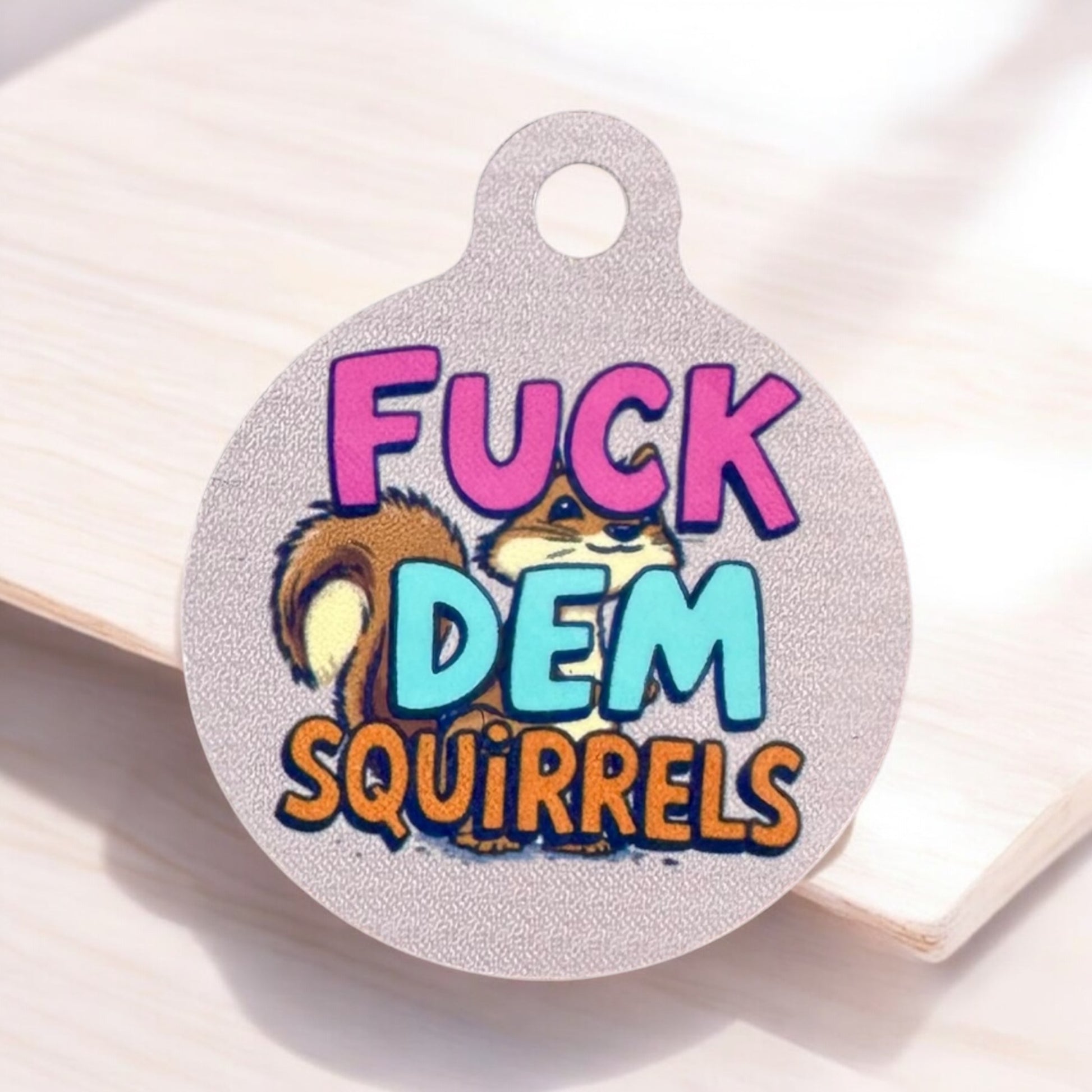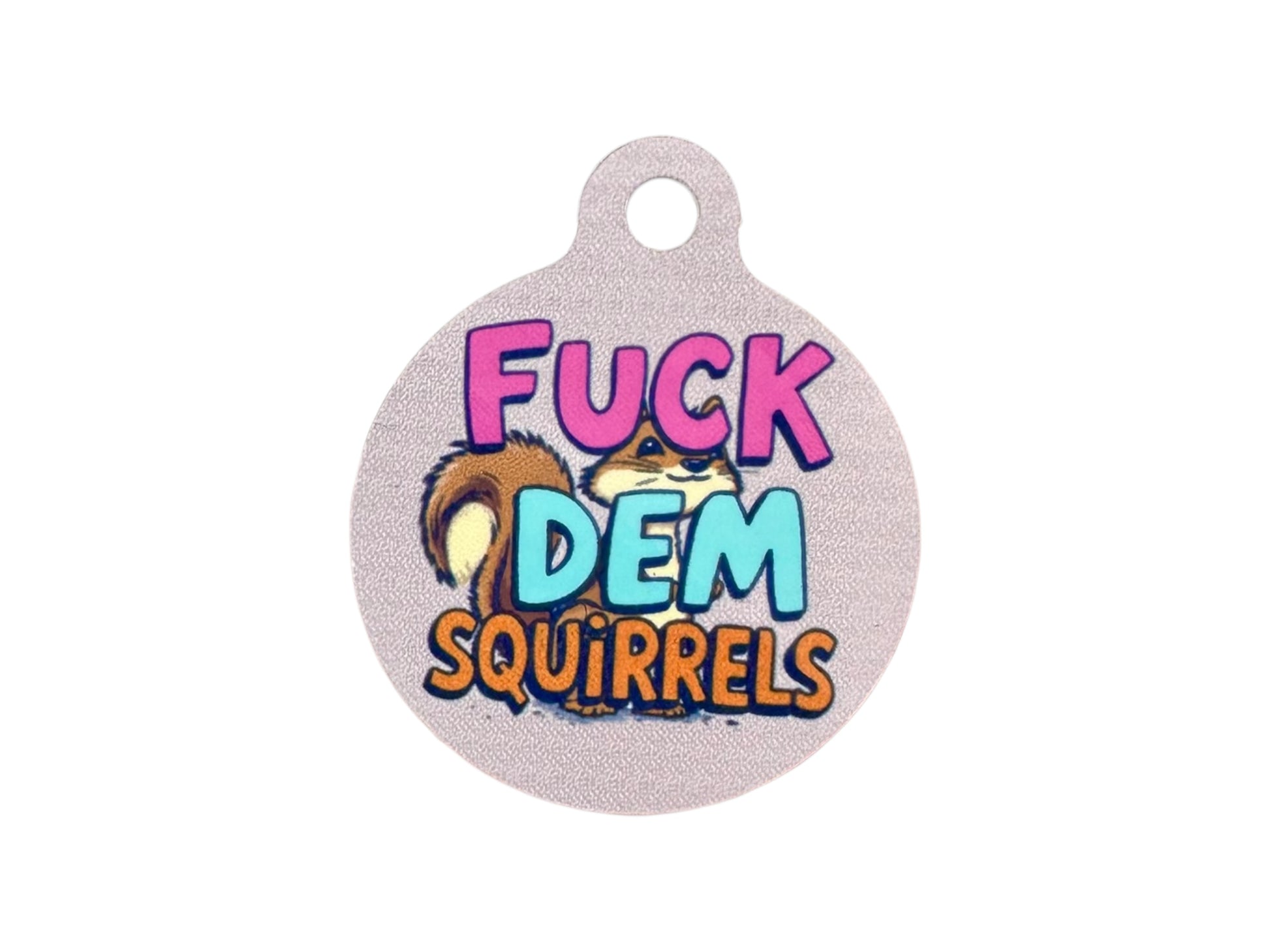 “Fuck Dem Squirrels” funny Aluminum Pet Tag - Customizable