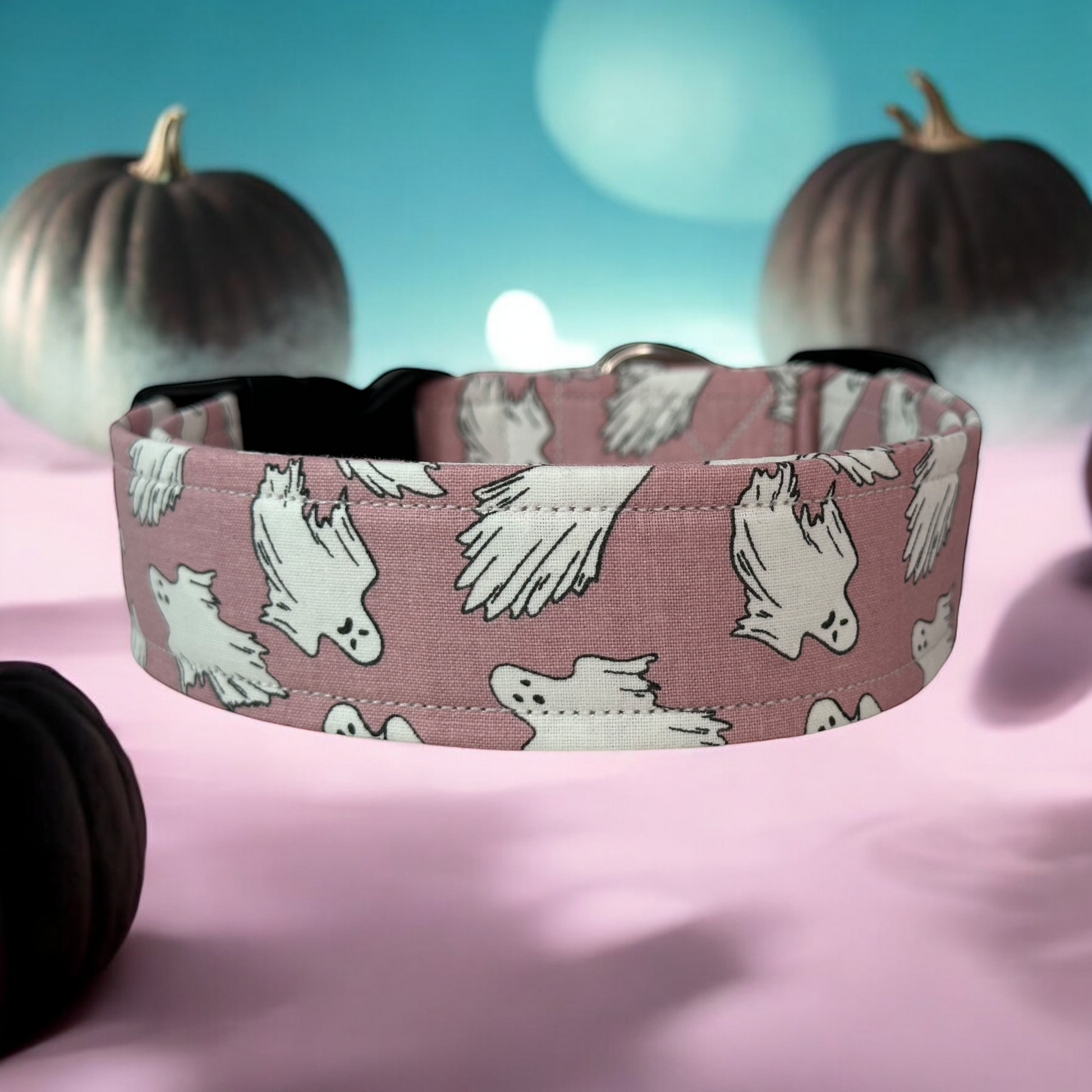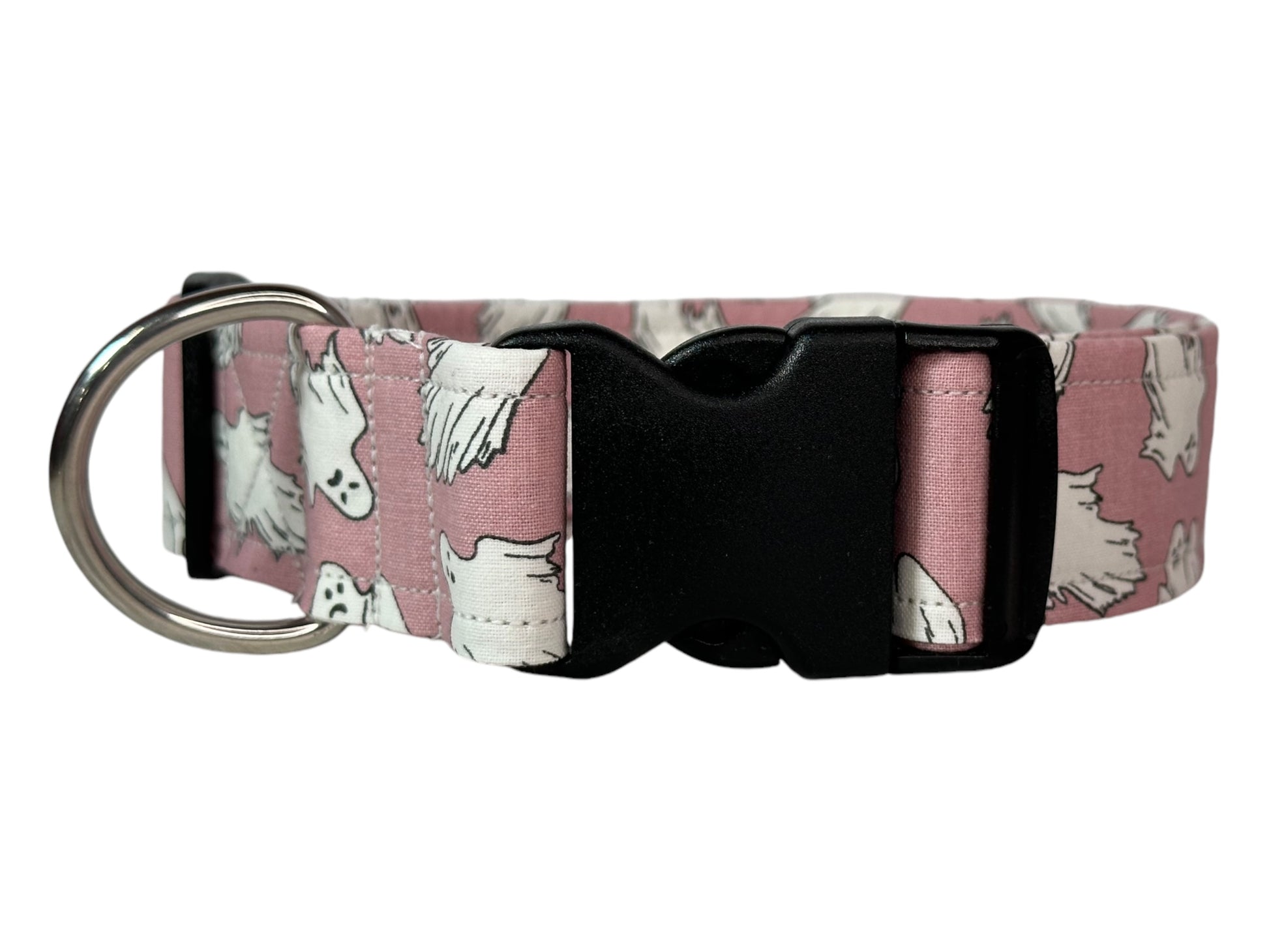 Ghosts on Pink Dog collar, Halloween Dog collar, handmade side release dog collar