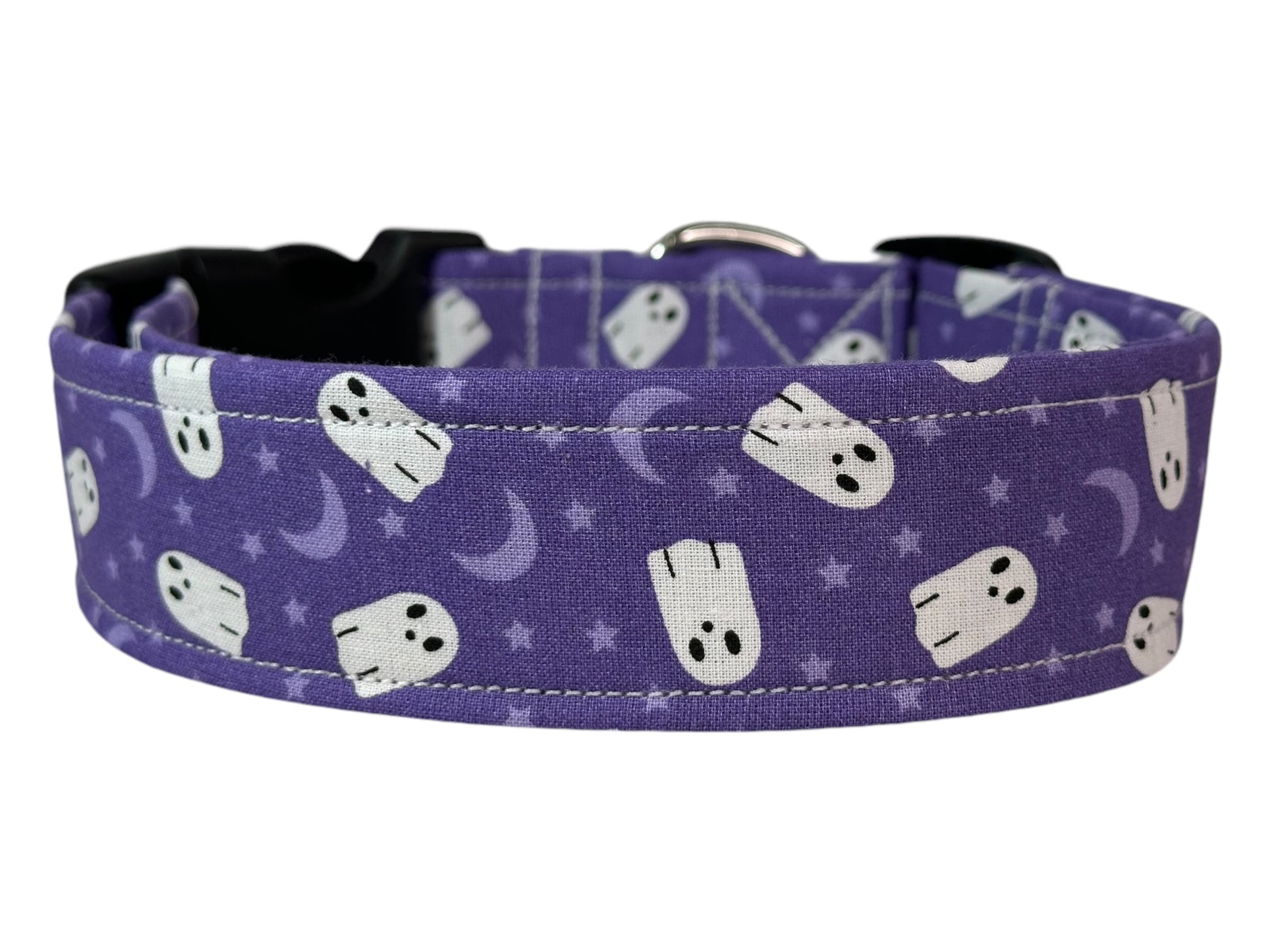 Ghosts on Purple Dog collar, Halloween Dog collar, handmade side release dog collar