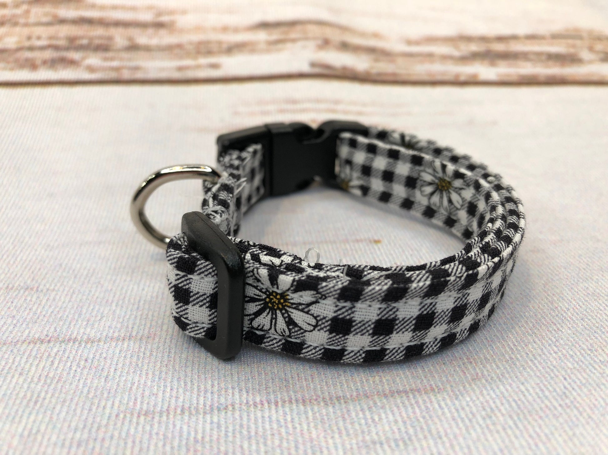 Gingham and daisy dog collar, girl dog collar, cute dog collar, side release collar, adjustable collar, gingham plaid, daisy dog collar