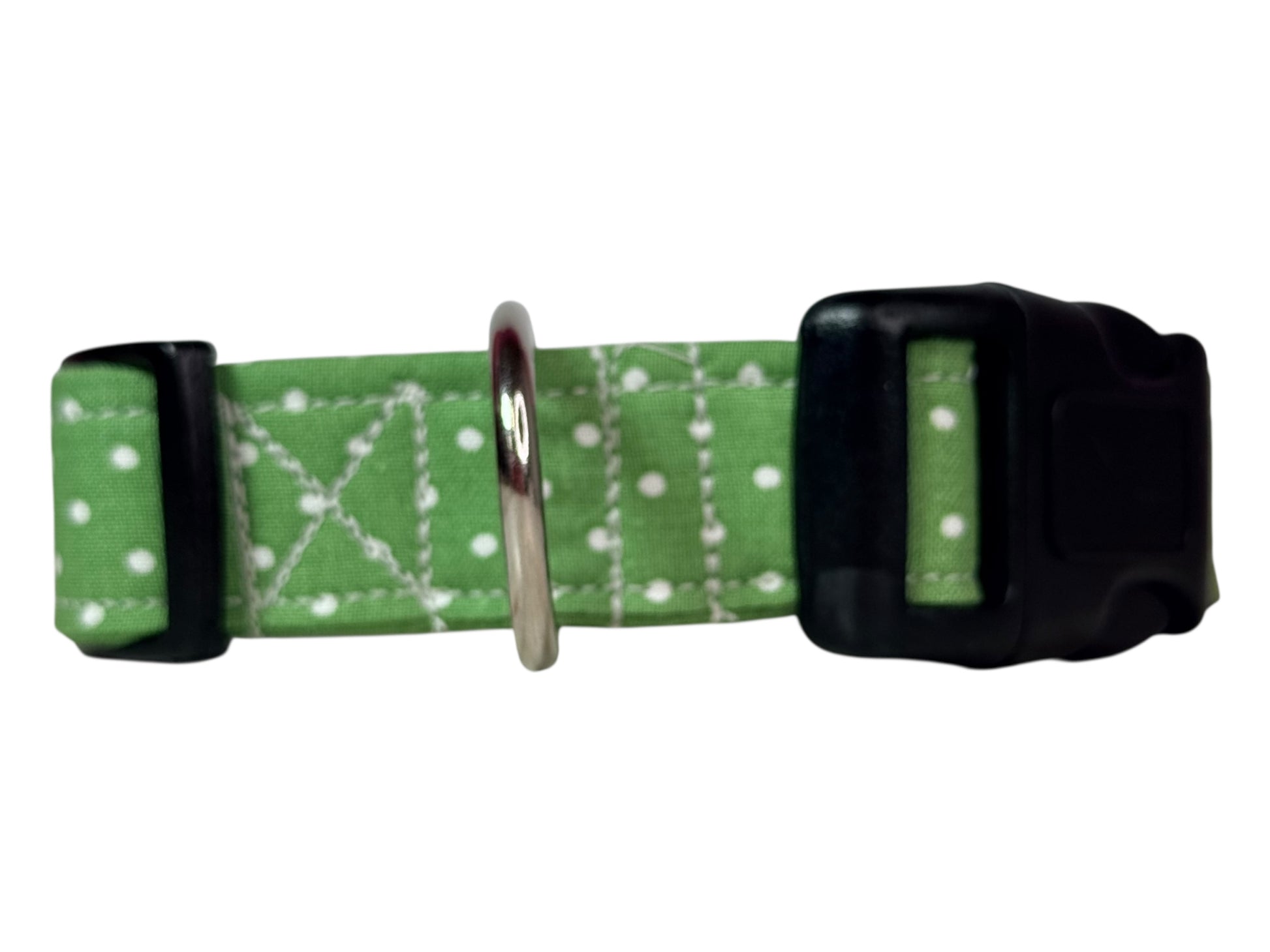 Green Polka Dot Handmade dog collar, adjustable side release, Handmade Pet Collar with Heavy-Duty Webbing, washable fabric