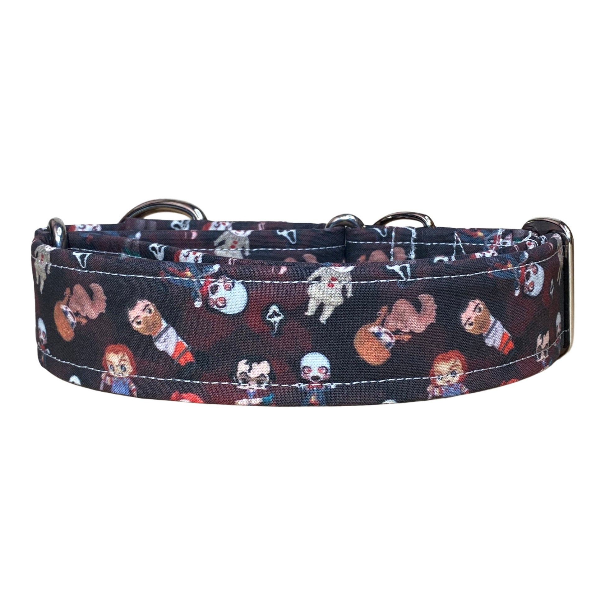 Horror Martingale dog collar, adjustable martingale collar, choke collar, washable martingale collar, horror print, funny martingale collar