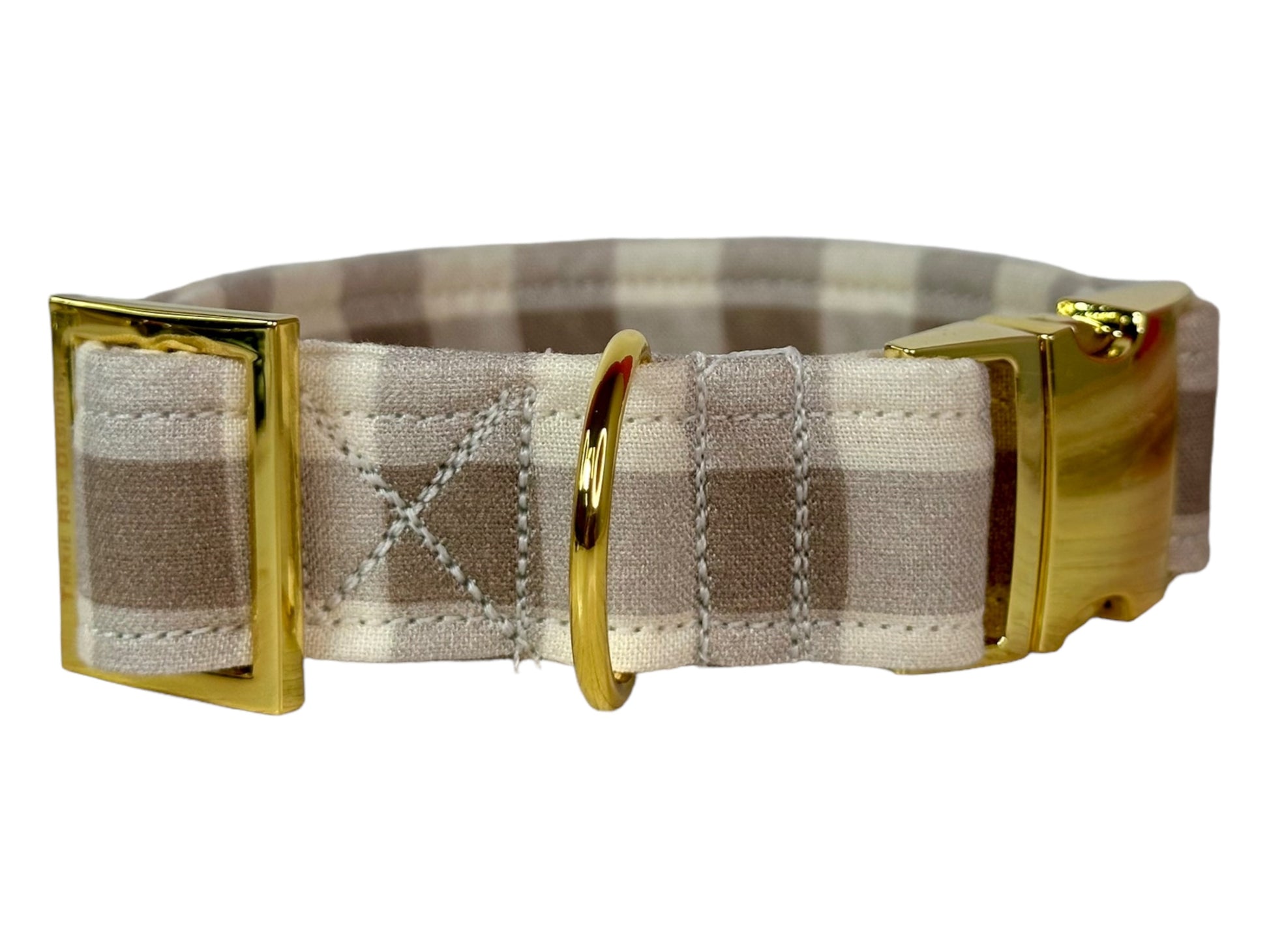 Khaki Checkered - Personalized Engraved Dog collar - Metal Side release dog collar