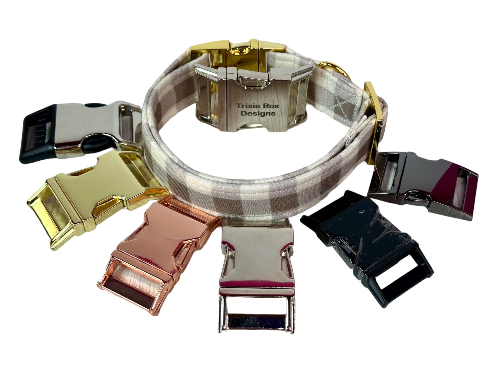 ⭐️Cleaning instructions: machine wash and air dry. No iron needed.••Different colored plastic buckles do not come in 1 1/2” wide. Small and extra small items with colored buckles can have metal tri-glides.