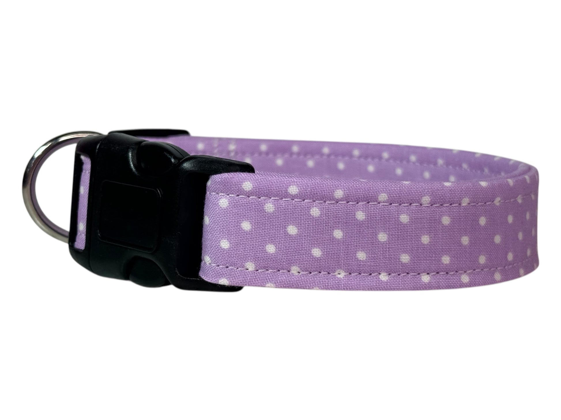Light Purple Polka Dot Handmade dog collar, adjustable side release, Handmade Pet Collar with Heavy-Duty Webbing, washable fabric