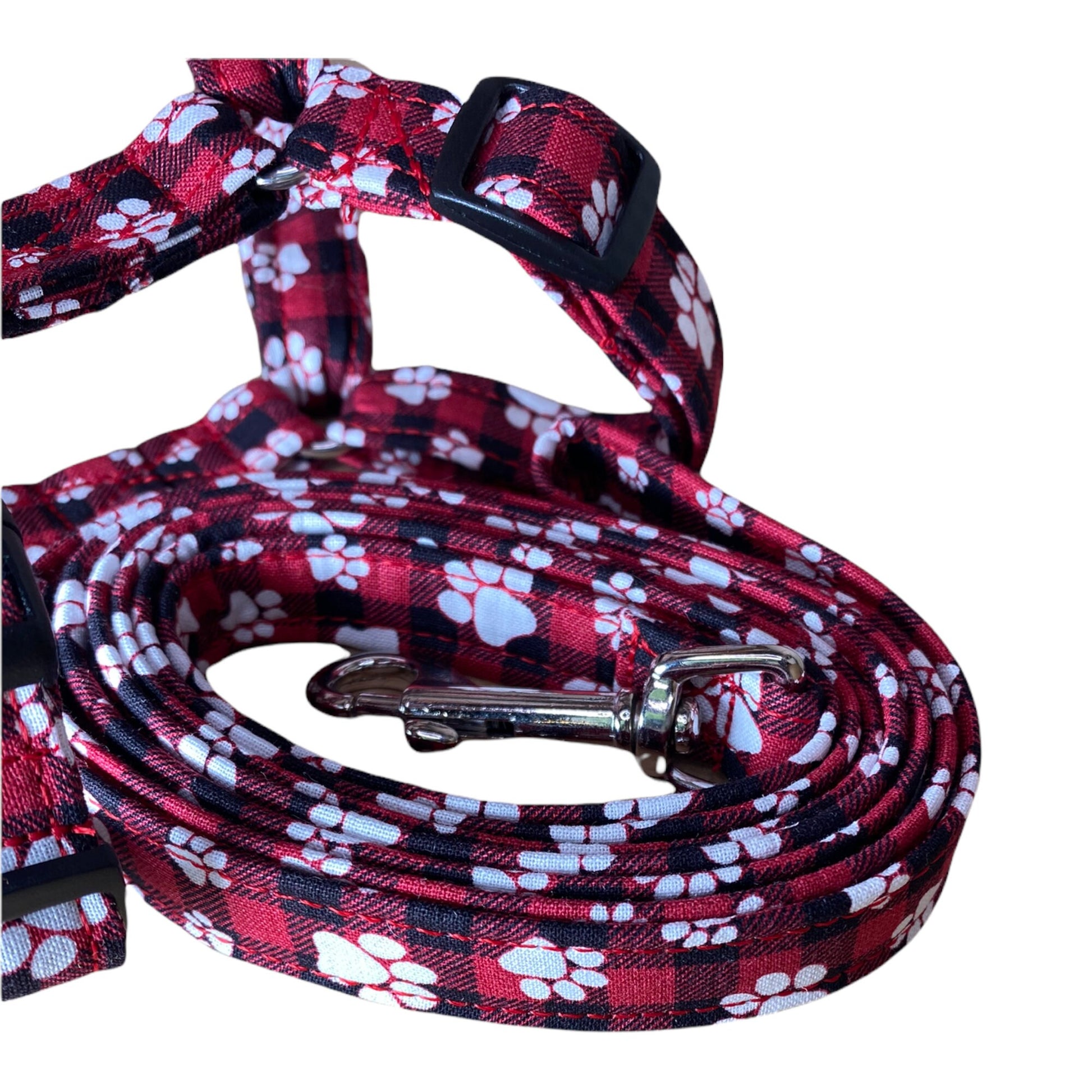 Lumberjack dog harness and leash set, Buffalo check, buffalo plaid, red, black, standard Roman harness, step in harness, adjustable harness