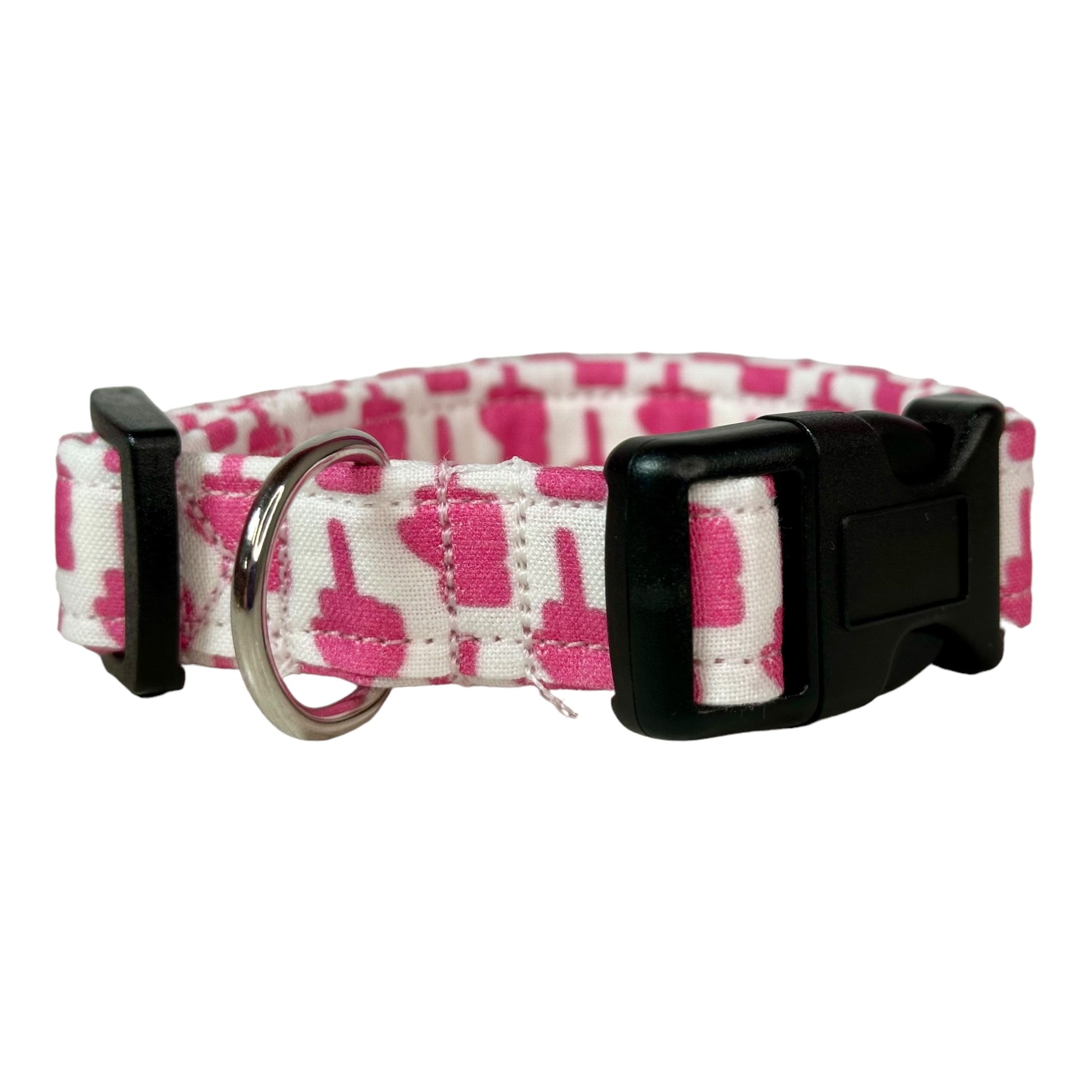 This handmade dog collar features a side release buckle and wide mouth tri-glide for quick and easy adjustments. Made with durable materials, it can withstand everyday wear and tear. Best of all, it's washable! Keep your furry friend comfortable and stylish with this custom dog collar!
