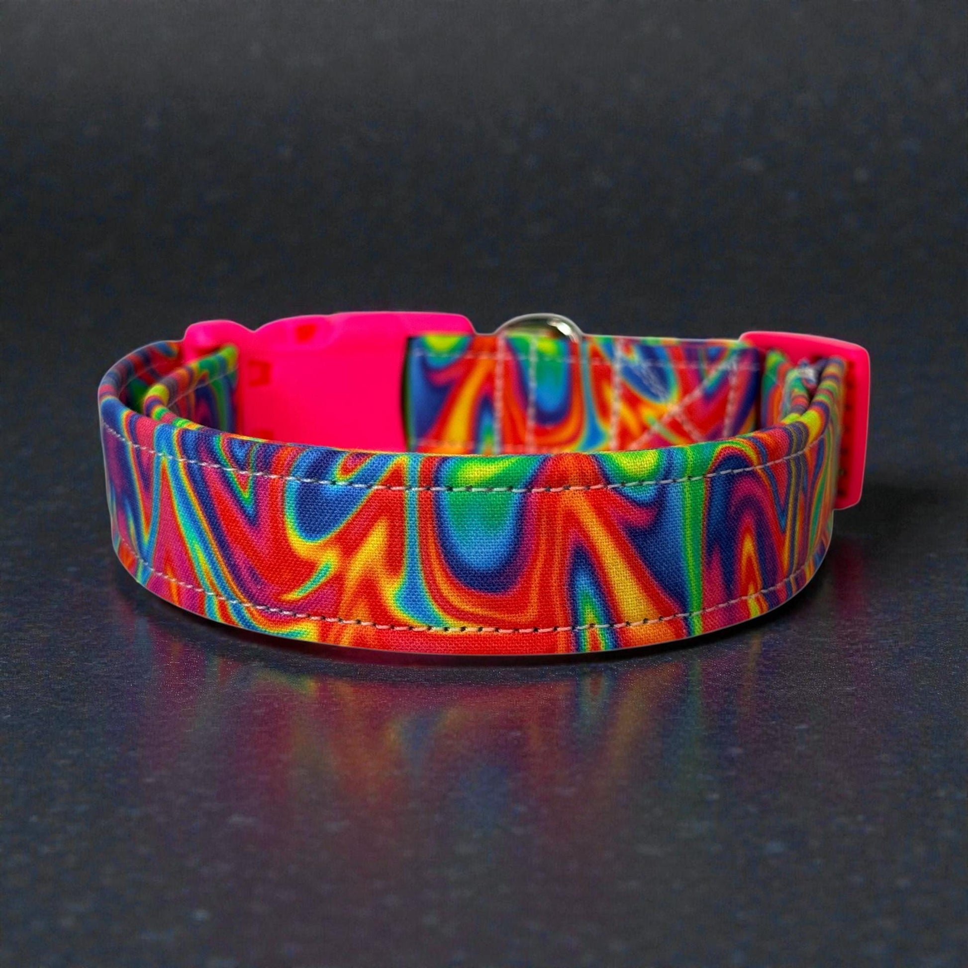 Neon Psychedelic Rainbow Handmade dog collar, Handmade Pet Collar with Heavy-Duty Webbing & Stainless Steel Hardware
