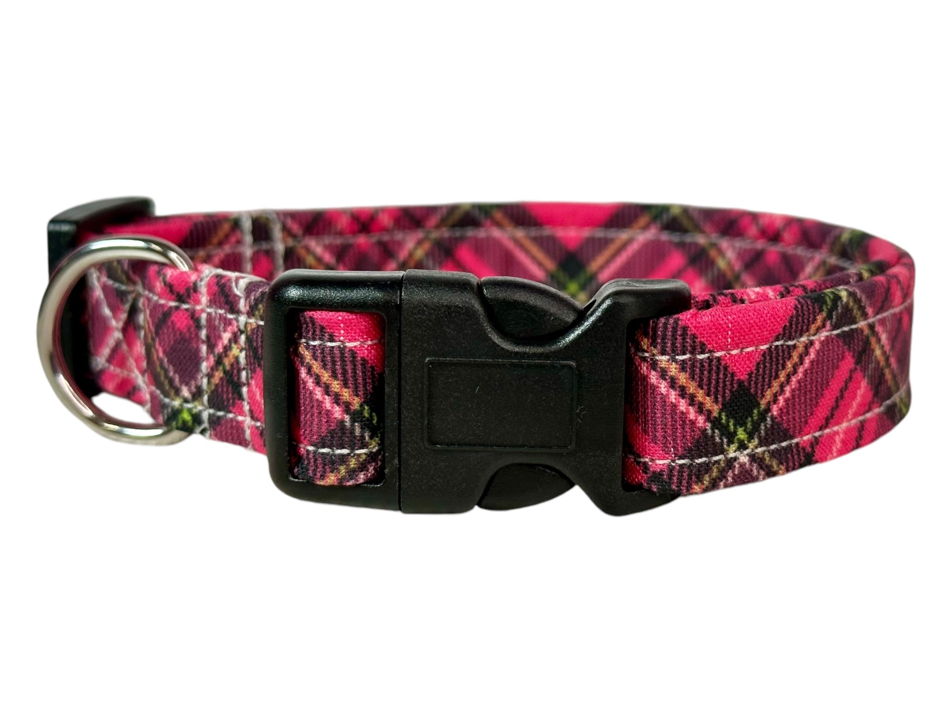 Pink Argyle Plaid Dog collar, handmade side release dog collar