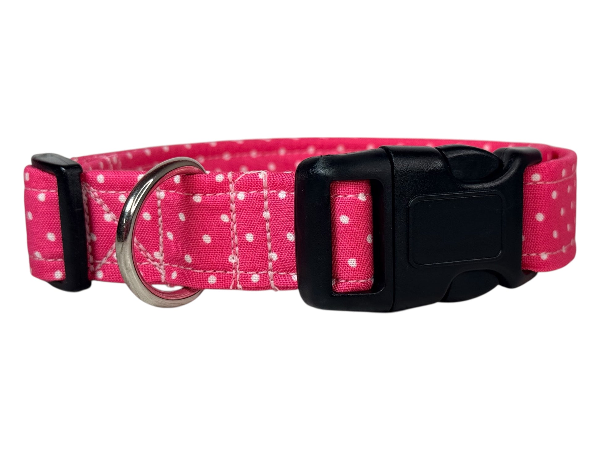 Pink Polka Dot Handmade dog collar, adjustable side release, Handmade Pet Collar with Heavy-Duty Webbing, washable fabric