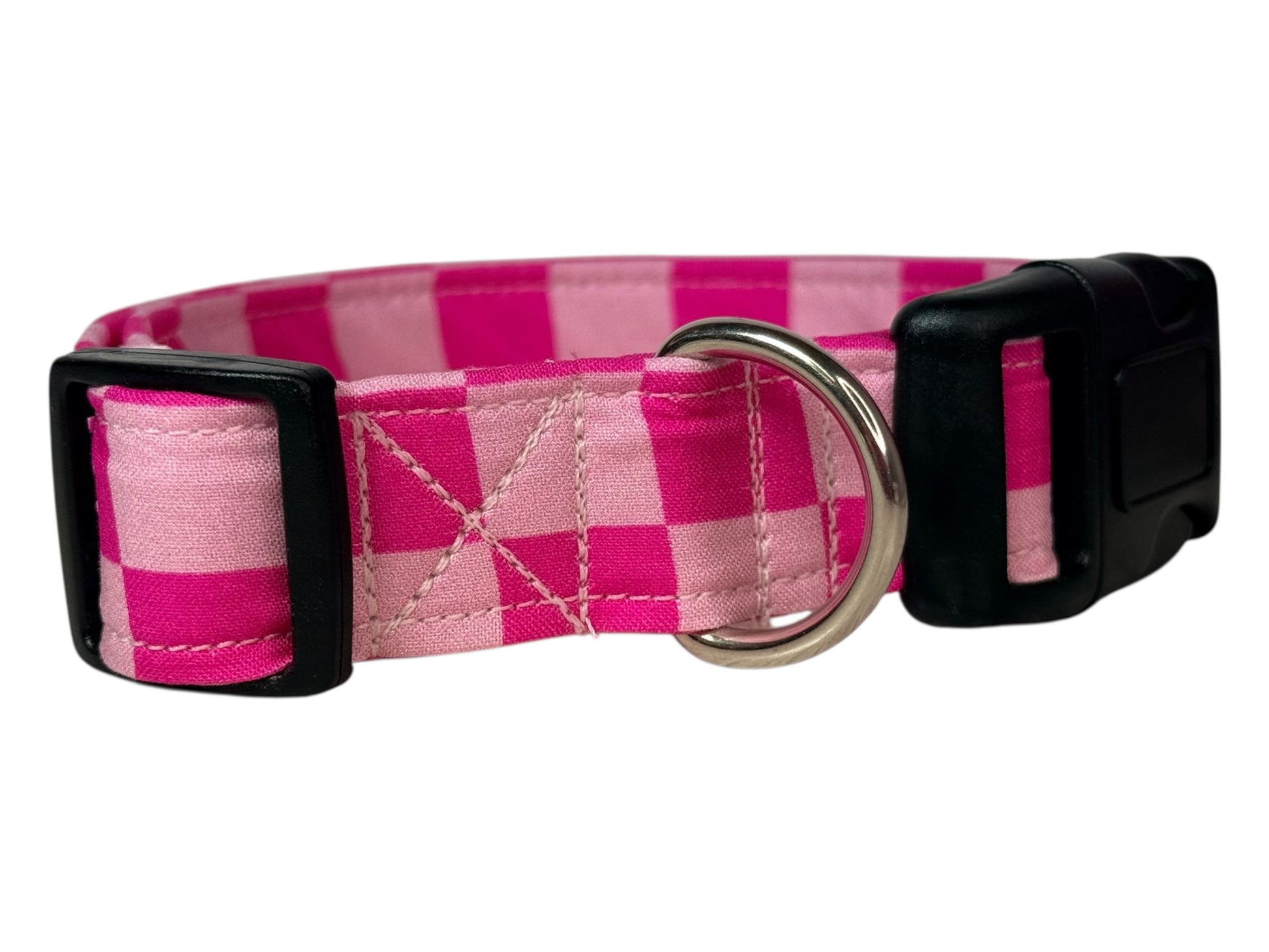 Pink retro checkered Handmade dog collar, adjustable side release, Handmade Pet Collar with Heavy-Duty Webbing, washable fabric,