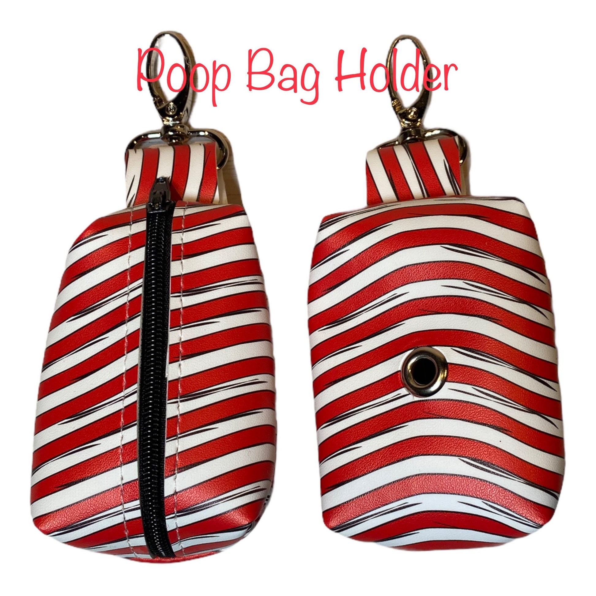 Red Striped Dog poop bag holder, dog waste bag holder, faux leather poop bag dispenser, dog waste bag dispenser, vegan leather poop bag