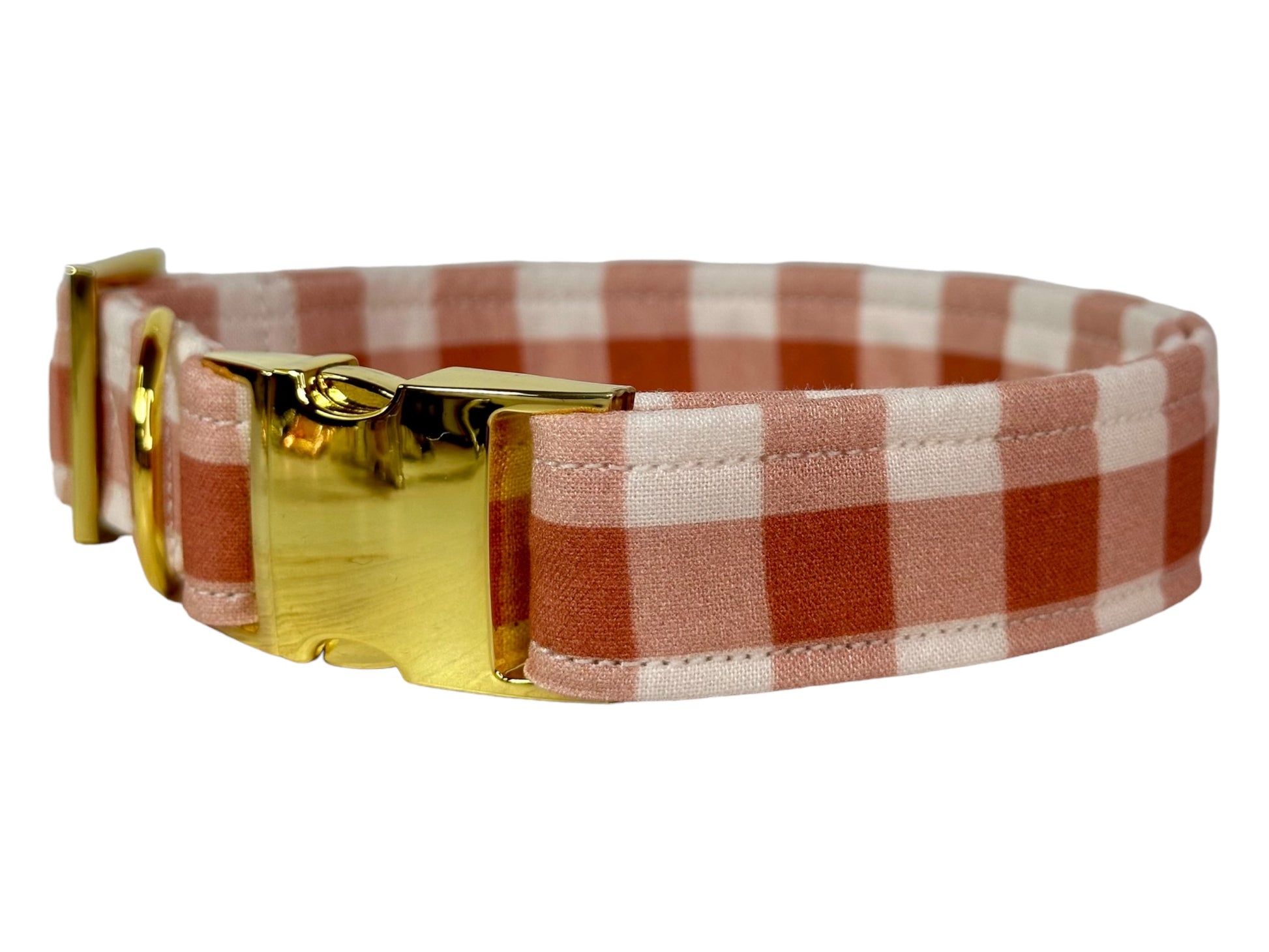 Rust Checkered - Personalized Engraved Dog collar - Metal Side release dog collar