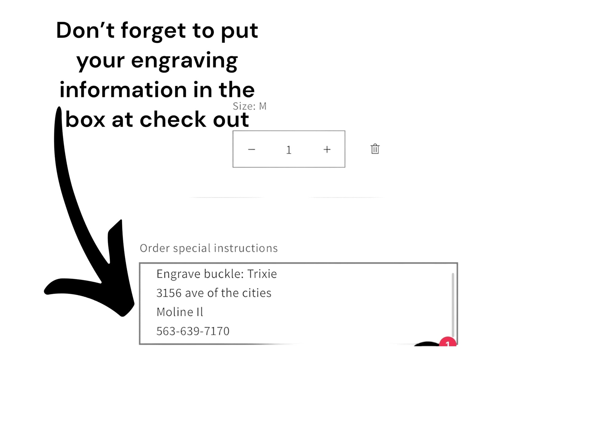 **Please put your desired engraving information in the “order special instructions” at check out.