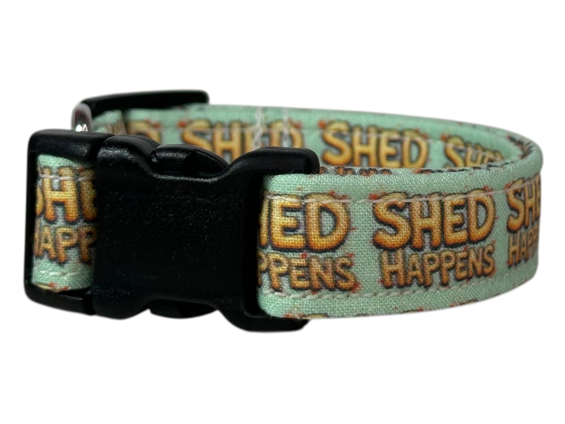 Shed Happens Dog Collar β Funny Handmade Pet Collar with Heavy-Duty Webbing & Stainless Steel Hardware
