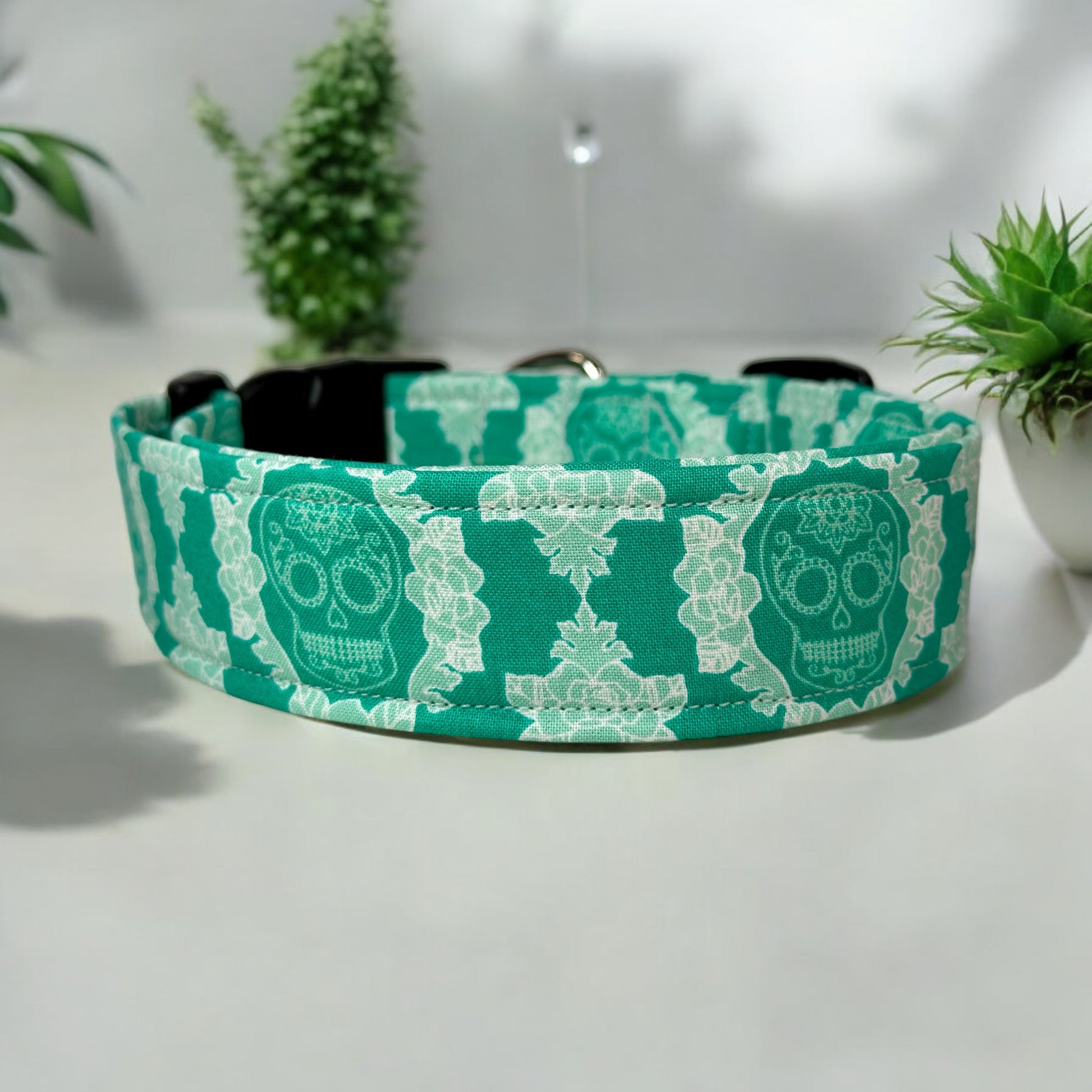 This handmade dog collar features a side release buckle and wide mouth tri-glide for quick and easy adjustments. Made with durable materials, it can withstand everyday wear and tear. Best of all, it's washable! Keep your furry friend comfortable and stylish with this custom dog collar!