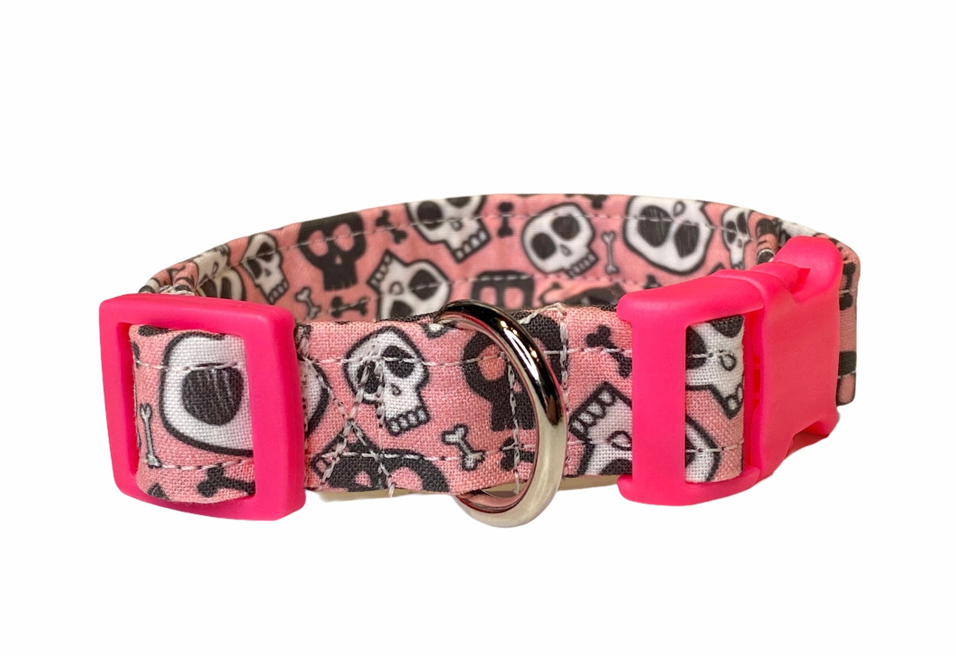 Skull dog collar, pink skull dog collar, pink skull collar, dog collar girl, eco friendly collar, pink skull, cat collar, washable collar
