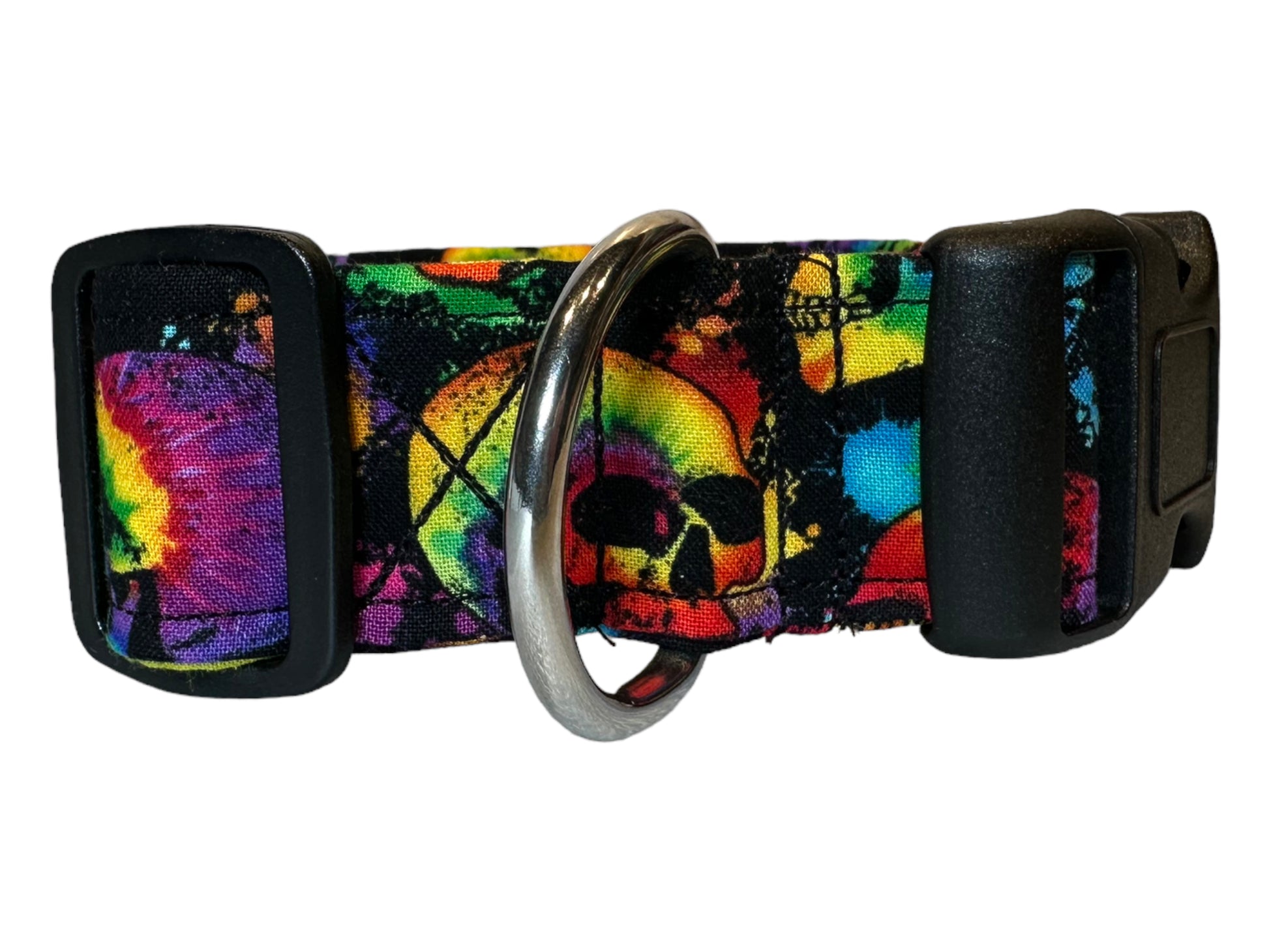 Tie dye skull dog collar, side release collar - adjustable - handmade in Moline Illinois