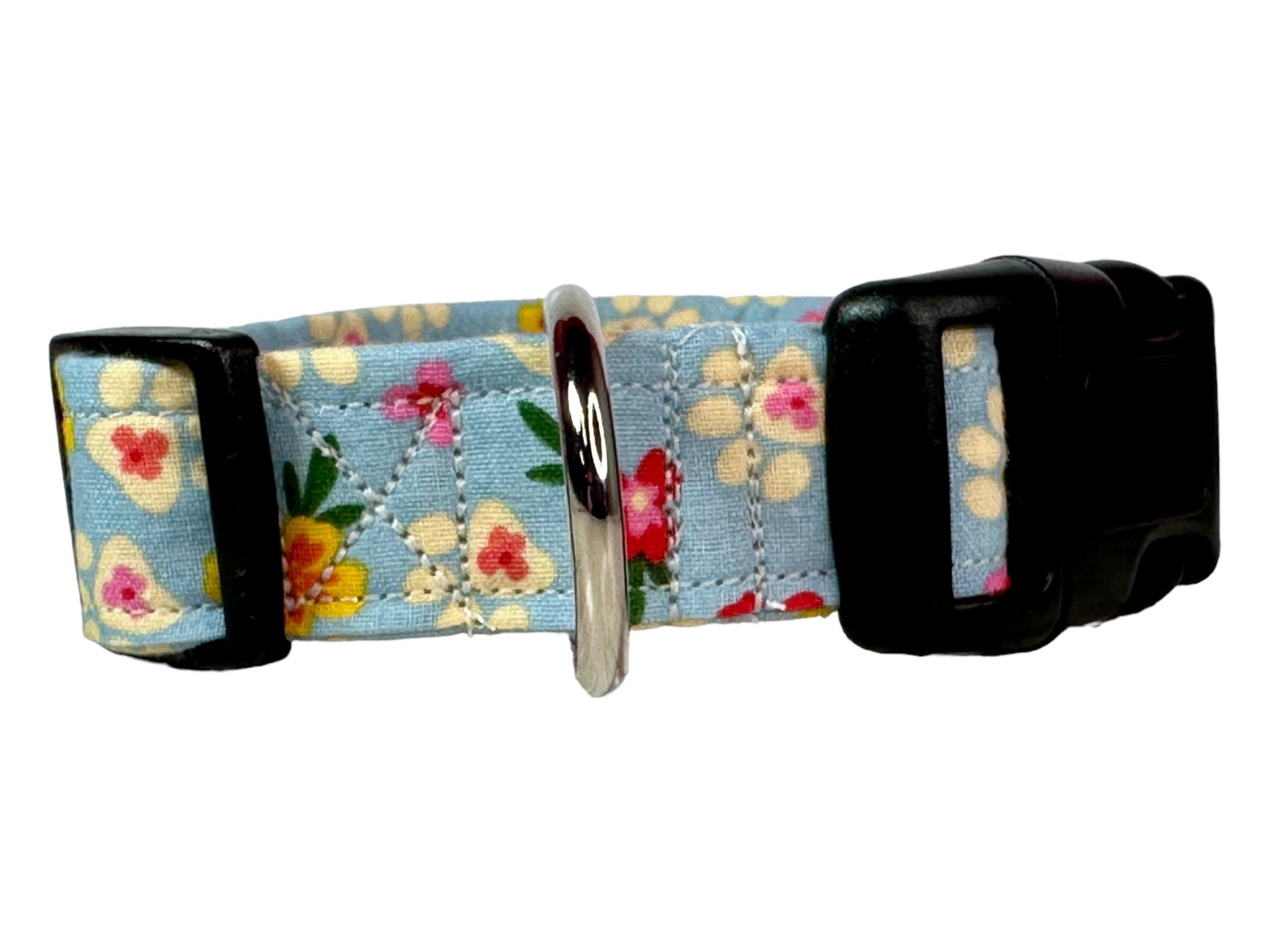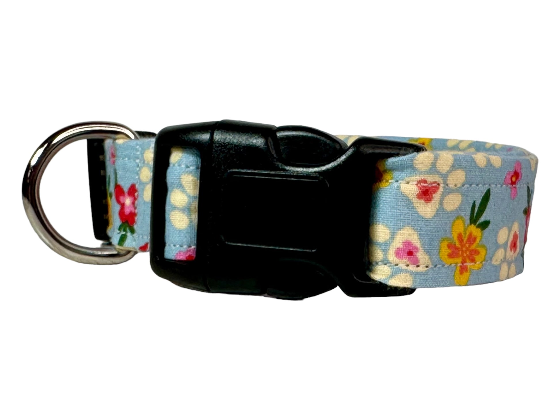 Tropical floral and paw print dog collar, handmade side release adjustable collar.