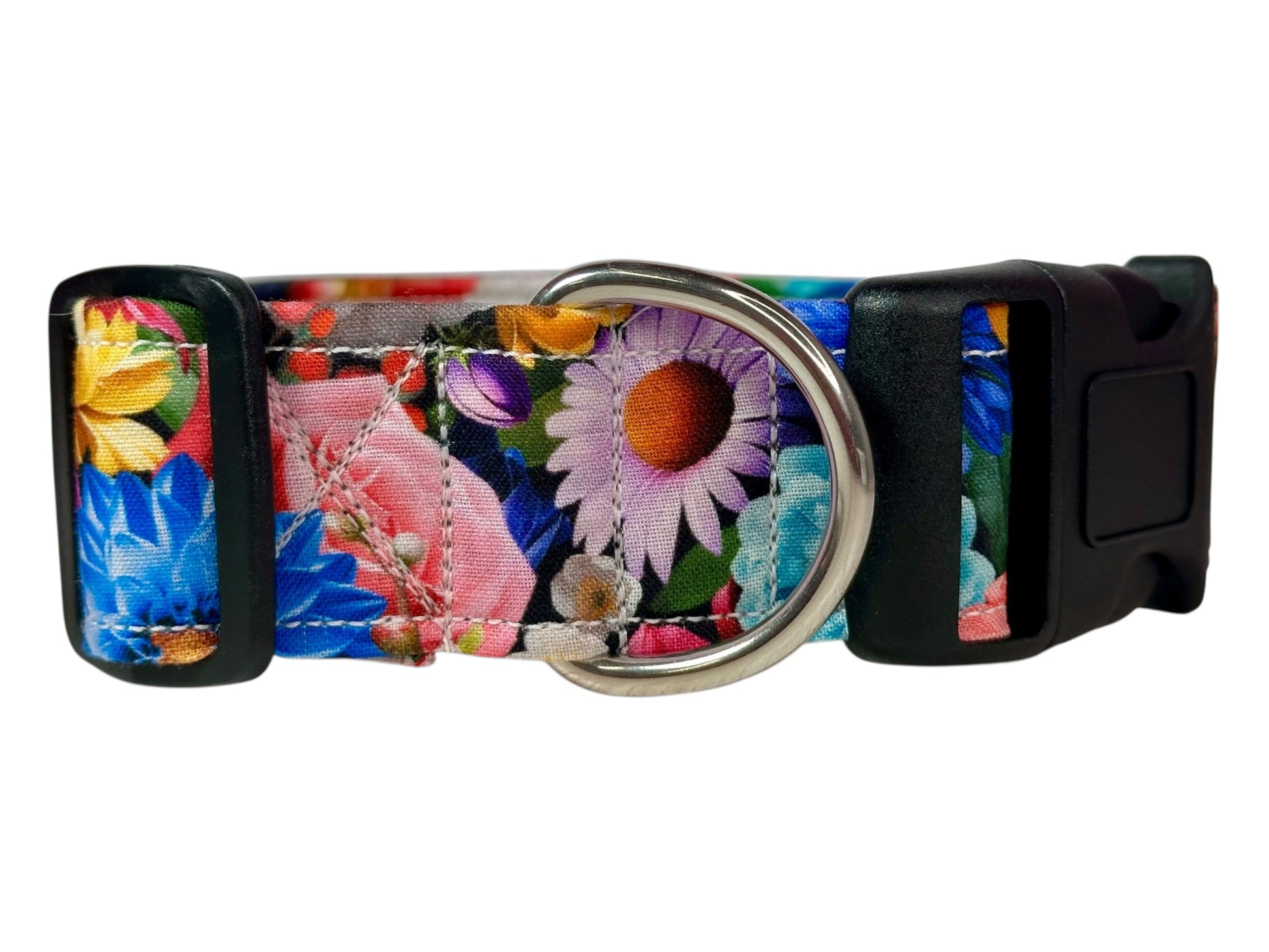 Vibrant Floral Dog Collar – Floral Handmade Pet Collar with Heavy-Duty Webbing & Stainless Steel Hardware