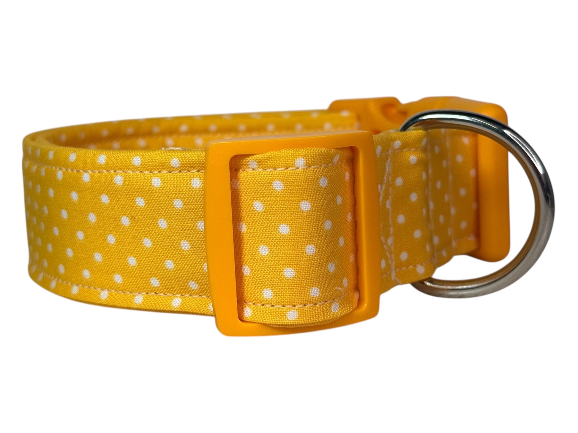 Yellow Polka Dot Handmade dog collar, adjustable side release, Handmade Pet Collar with Heavy-Duty Webbing, washable fabric