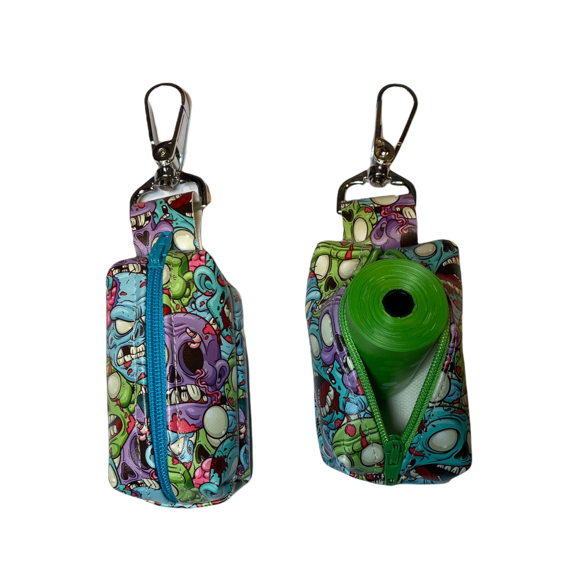 Zombie Dog poop bag holder, dog waste bag holder, faux leather poop bag dispenser, dog waste bag dispenser, vegan leather poop bag, Zombie